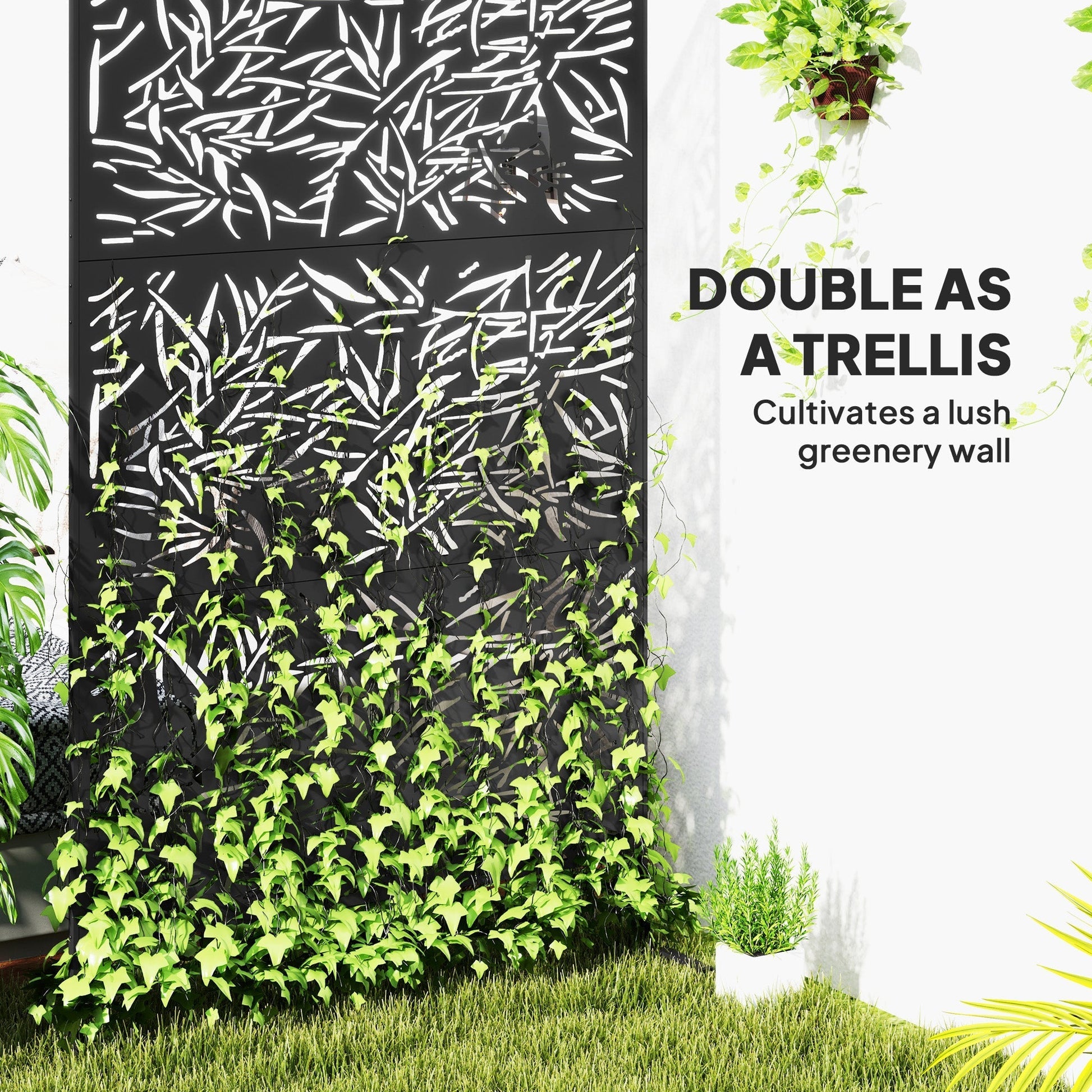 Transform your outdoor space with the Outsunny Outdoor Privacy Screen! This stylish patio privacy screen not only divides areas swiftly but also serves as a charming trellis. Crafted from solid steel with protective paint, it ensures longevity while enhancing your garden aesthetics. Fix it firmly with the included expansion screws and enjoy your new privacy patio divider!