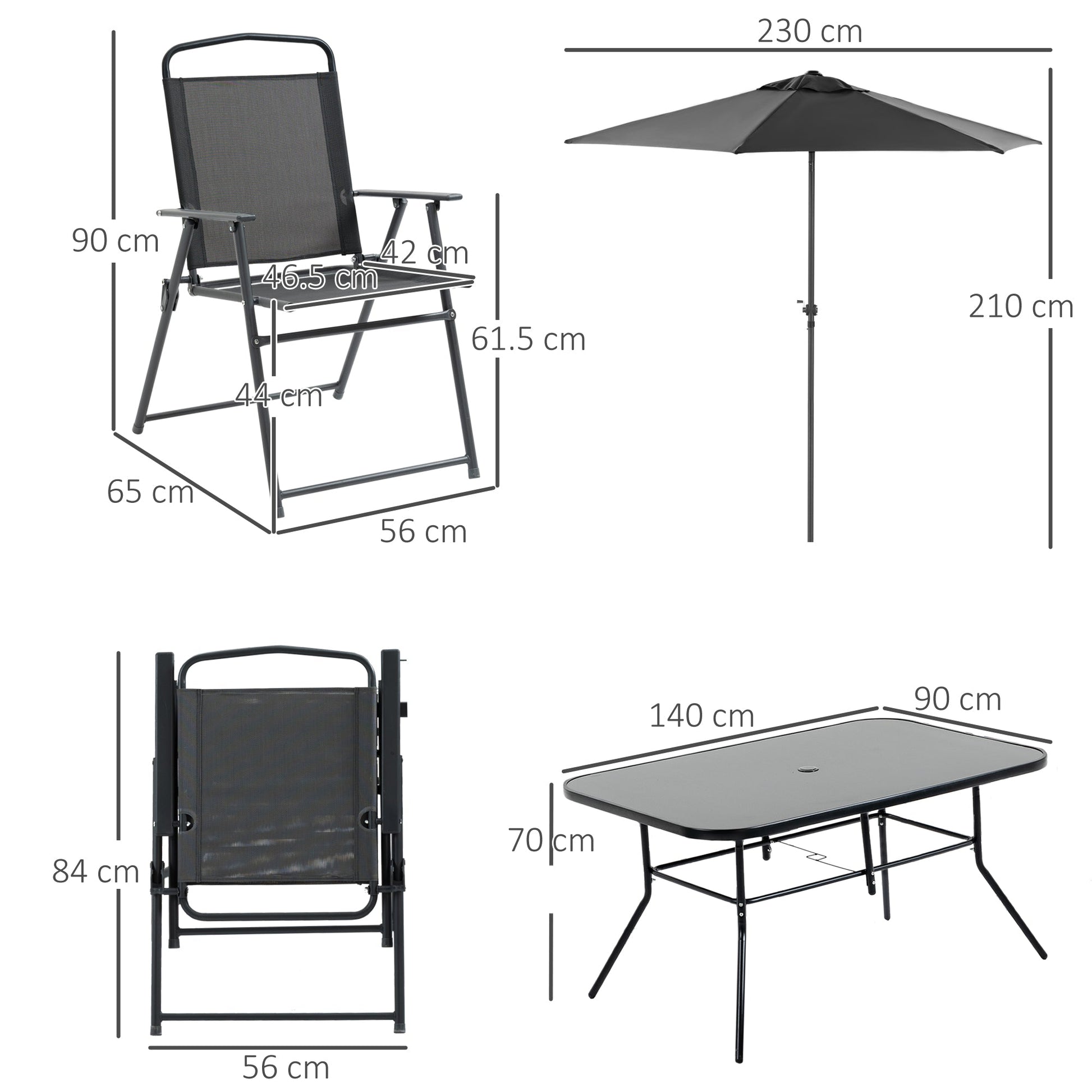طقم طعام للحديقة مكون من ثماني قطع من Outsunny، مع كراسي وطاولة ومظلة - أسود