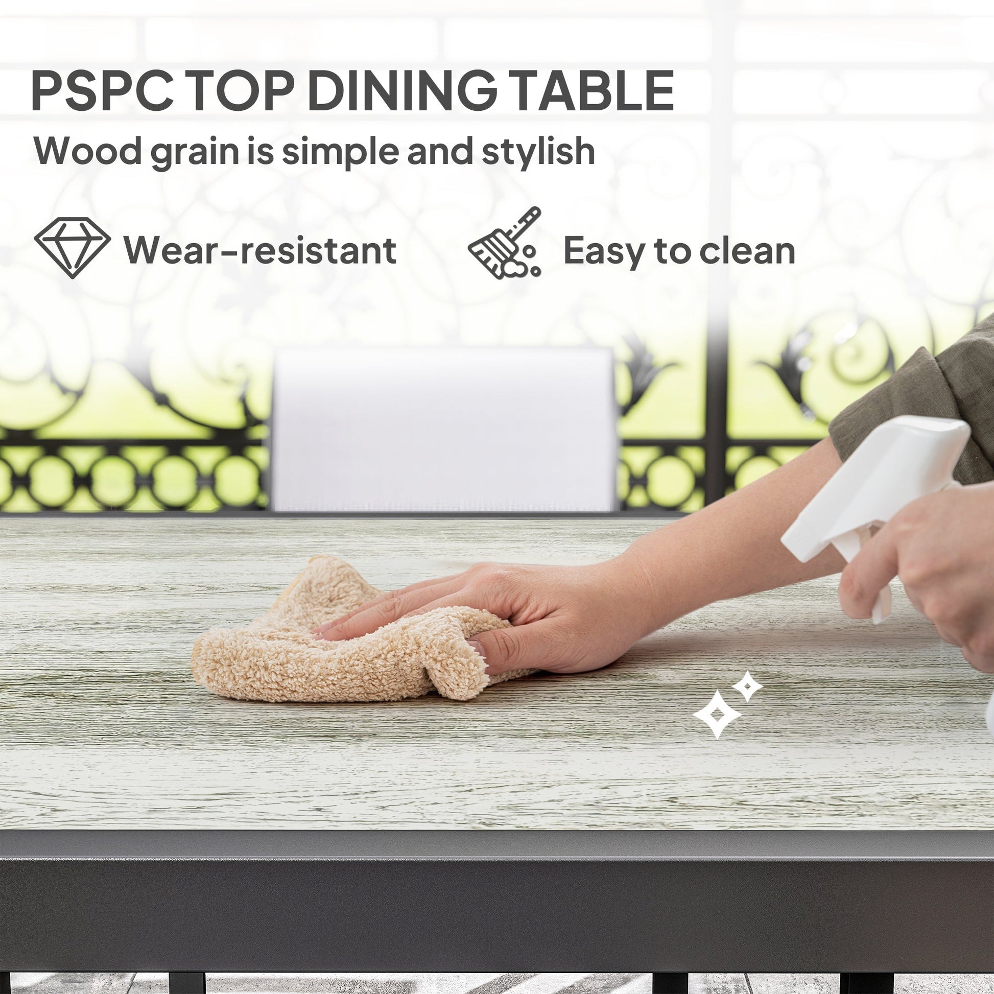 This Outsunny five-piece outdoor dining set allows you to dine and relax with loved ones. Comes with four stackable chairs with texteline fabric to sit company - the high backs and armrests support your body. The tall square table offers a comfortable surface to dine from, complete with beautiful wood-effect panels.