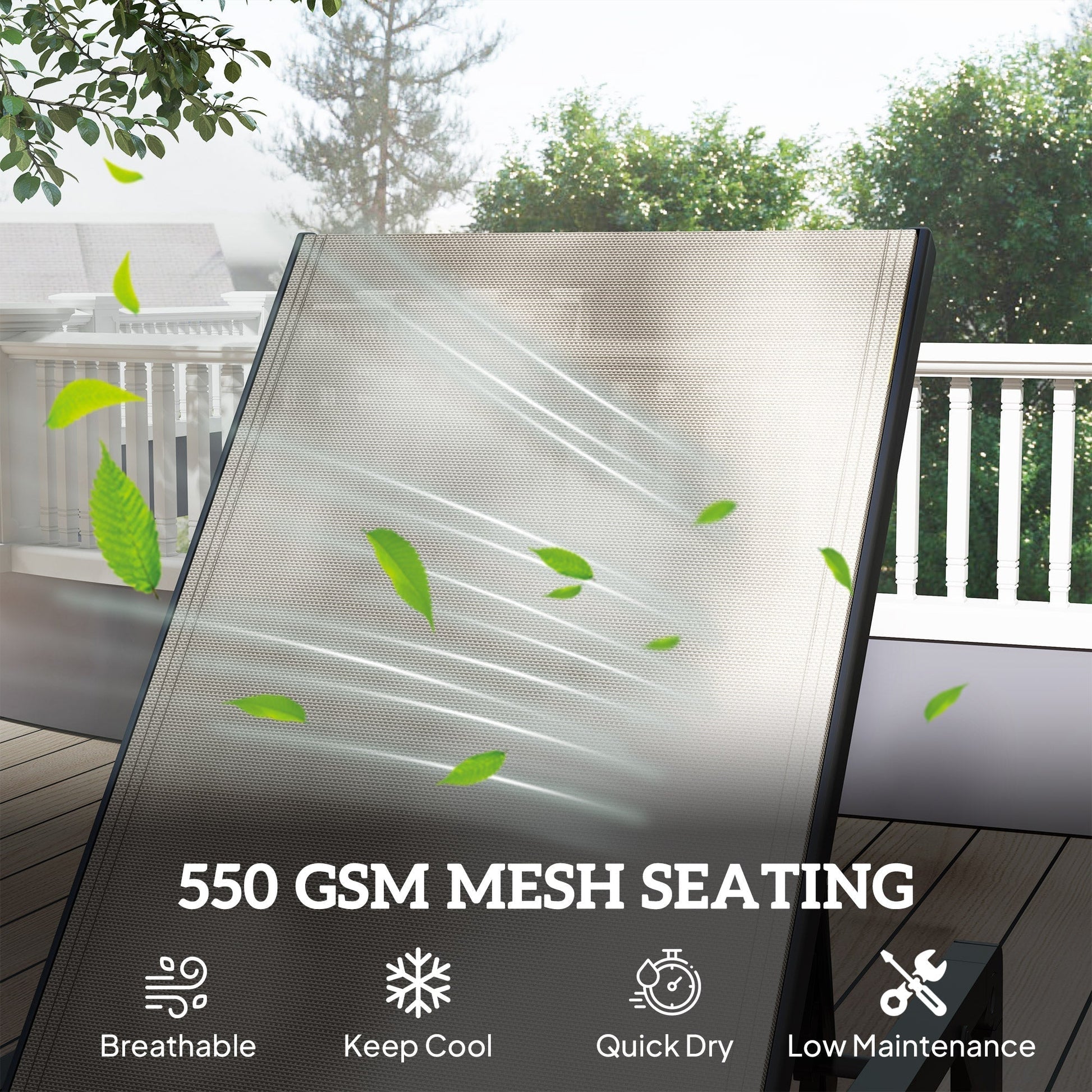 Relax and soak up the sun in style with the Outsunny Reclining Sun Lounger! Adjust the backrest through five levels, up to a flat 180 degrees, ensuring peak relaxation. Crafted from breathable, quick-drying Texteline mesh, this garden recliner keeps you cool and dry no matter the weather. Plus, its lightweight design makes it a breeze to move and store, enhancing any outdoor lounge area.