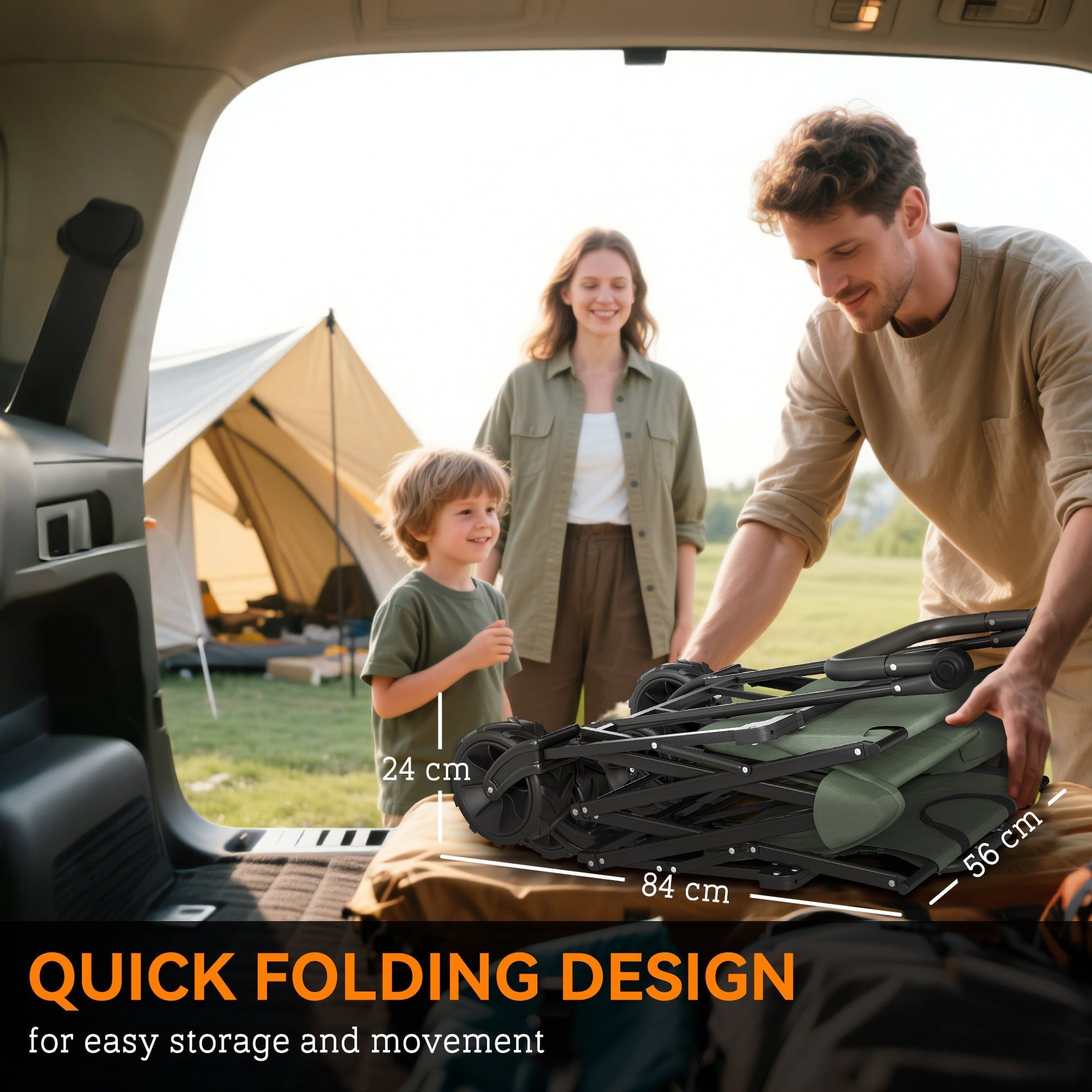 Outsunny Folding Trolley Cart Storage Wagon Beach Trailer 4 Wheels with Handle Overhead Canopy Cart Push Pull for Camping, Green