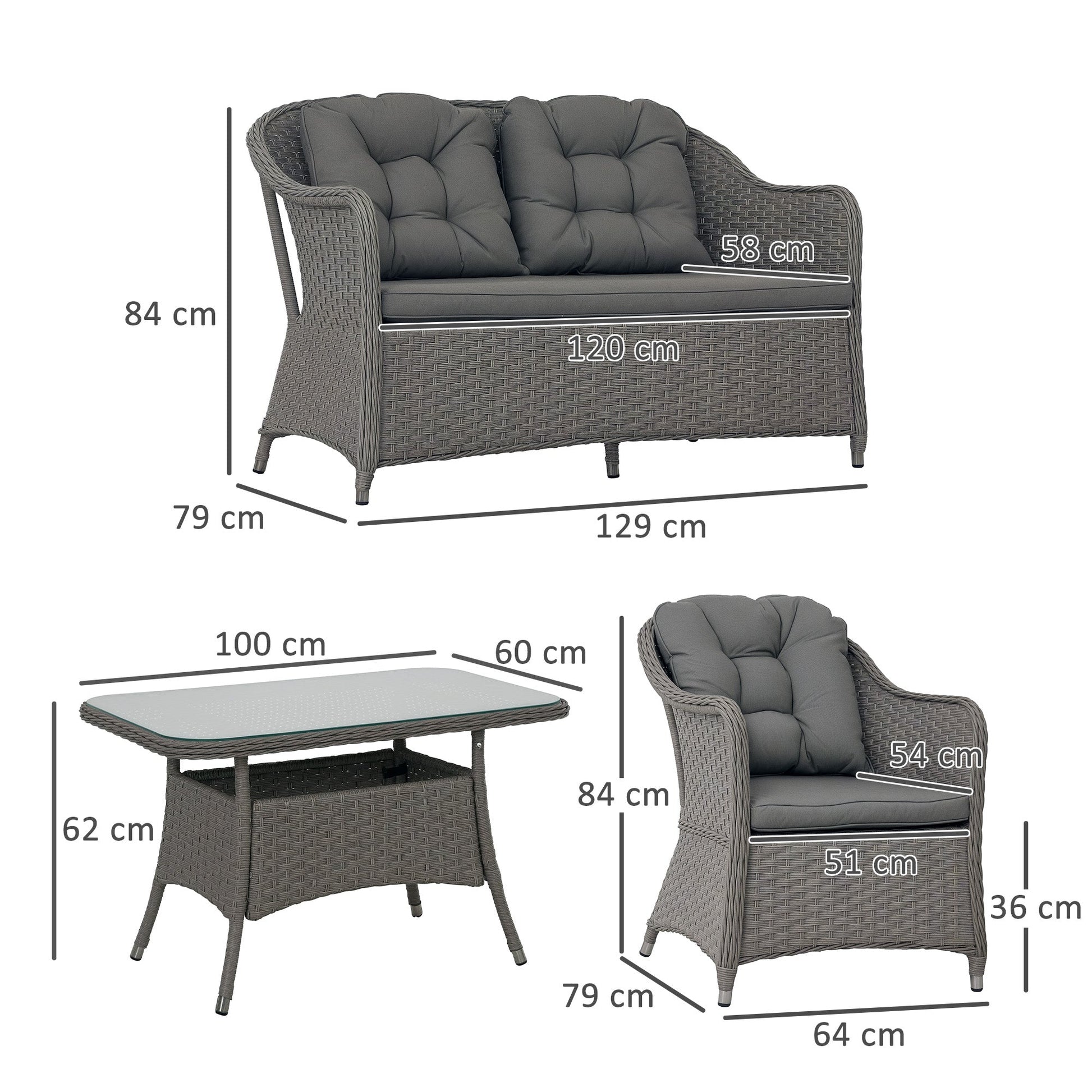 Outsunny Four-Piece Rattan Set, with Glass-Top Table - Light Grey