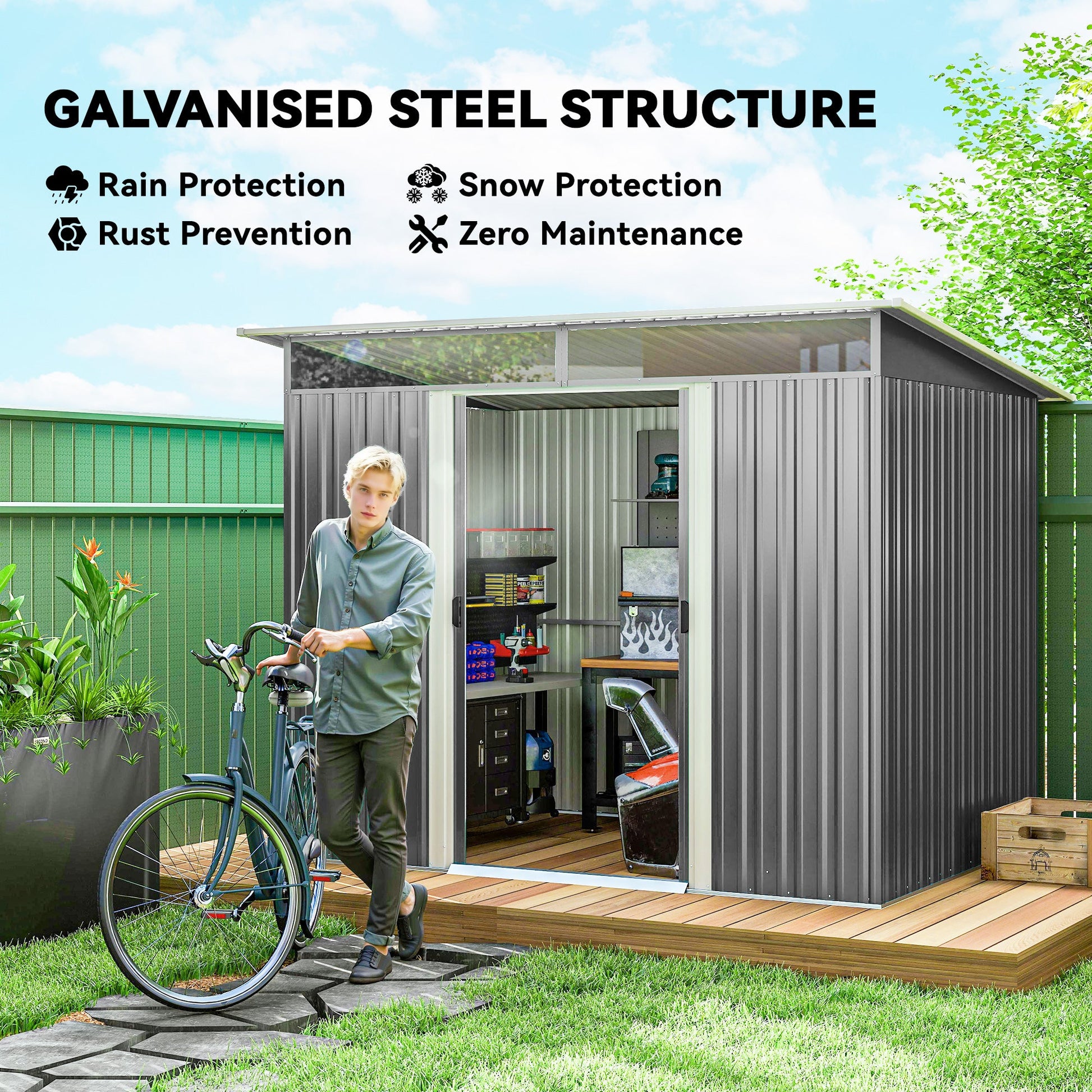 Outsunny Garden Metal Storage Shed House Hut Gardening Tool Storage w/ Tilted Roof and Ventilation 8.5 x 6ft, Grey