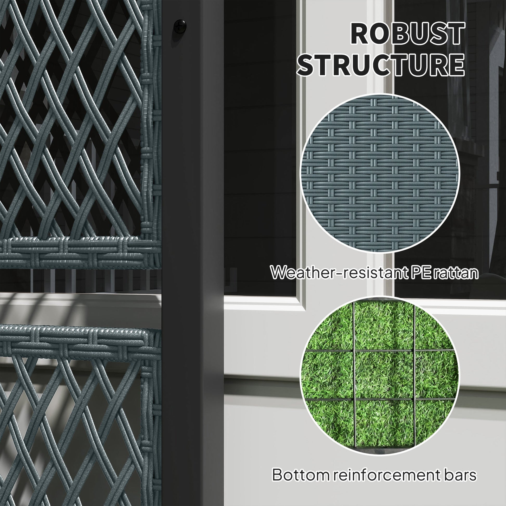 Discover the charm of the Outsunny planter with trellis, blending functionality with style. This raised garden bed features a built-in trellis, suitable for supporting climbing plants and a spacious lower box for a variety of greenery. Crafted from weather-resistant PE rattan and steel, it promises enduring elegance and ease of maintenance in any garden setting.