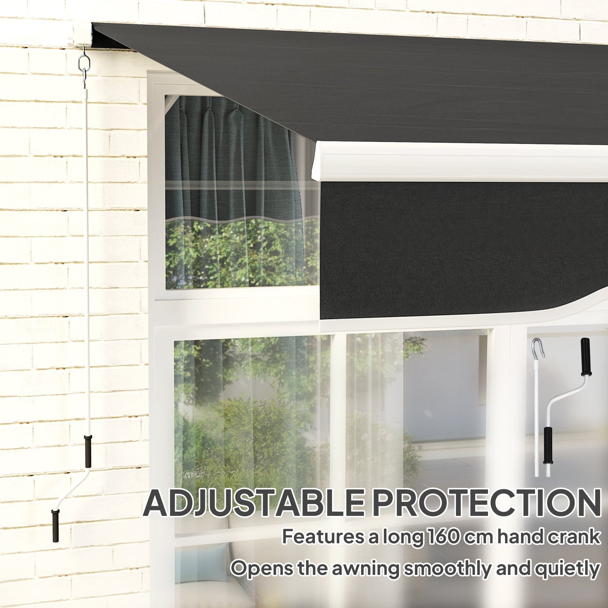 With a tough aluminium frame, this Outsunny 2 x 2.5m awning creates solid shade and protection, all day long. The thick 280gsm polyester canopy will protect you from any excessive heat and sunlight to keep you cool and comfortable. It can be easily mounted on the wall with the included accessories. The retractable movement of this garden canopy., paired with hand crank allows you to open/close easily.
