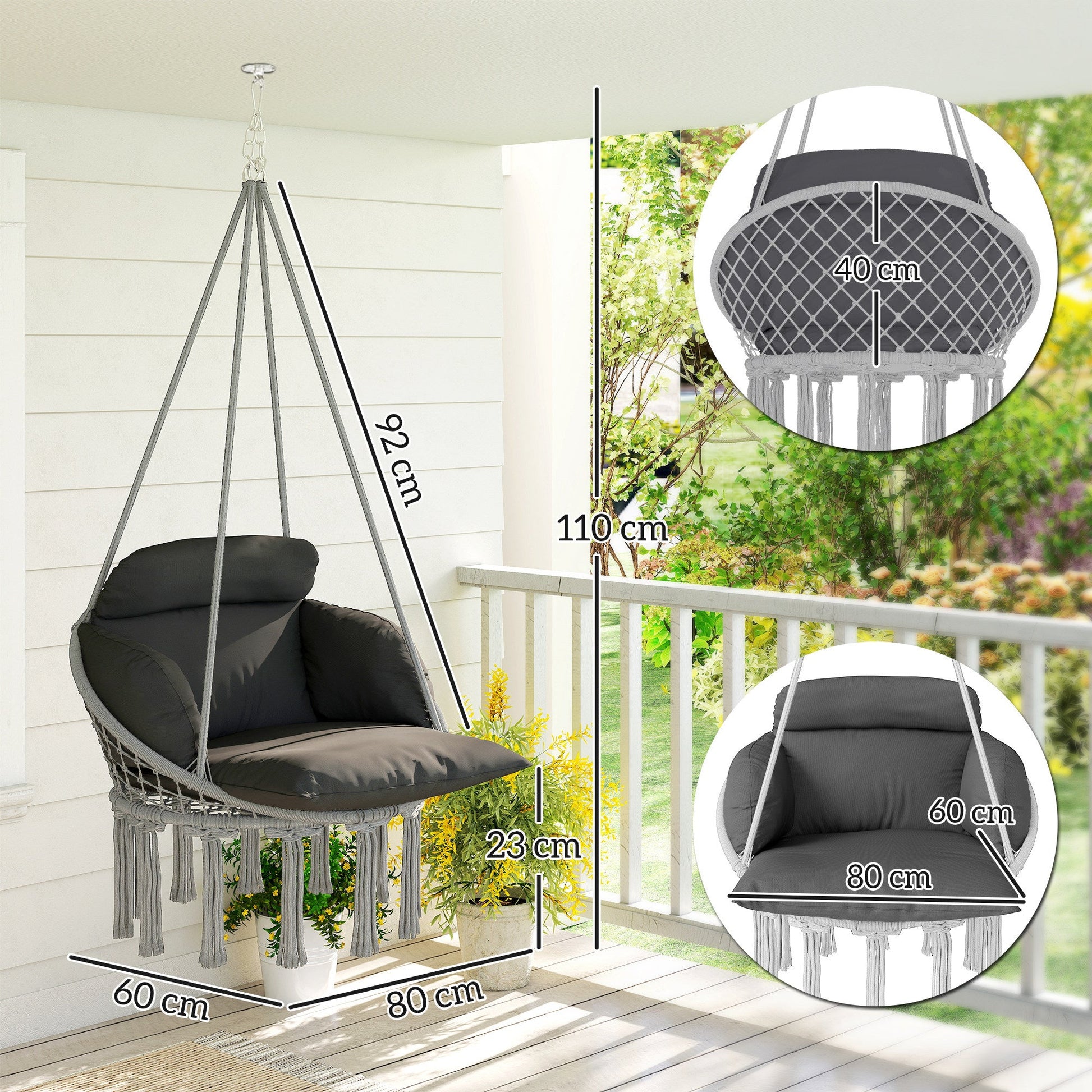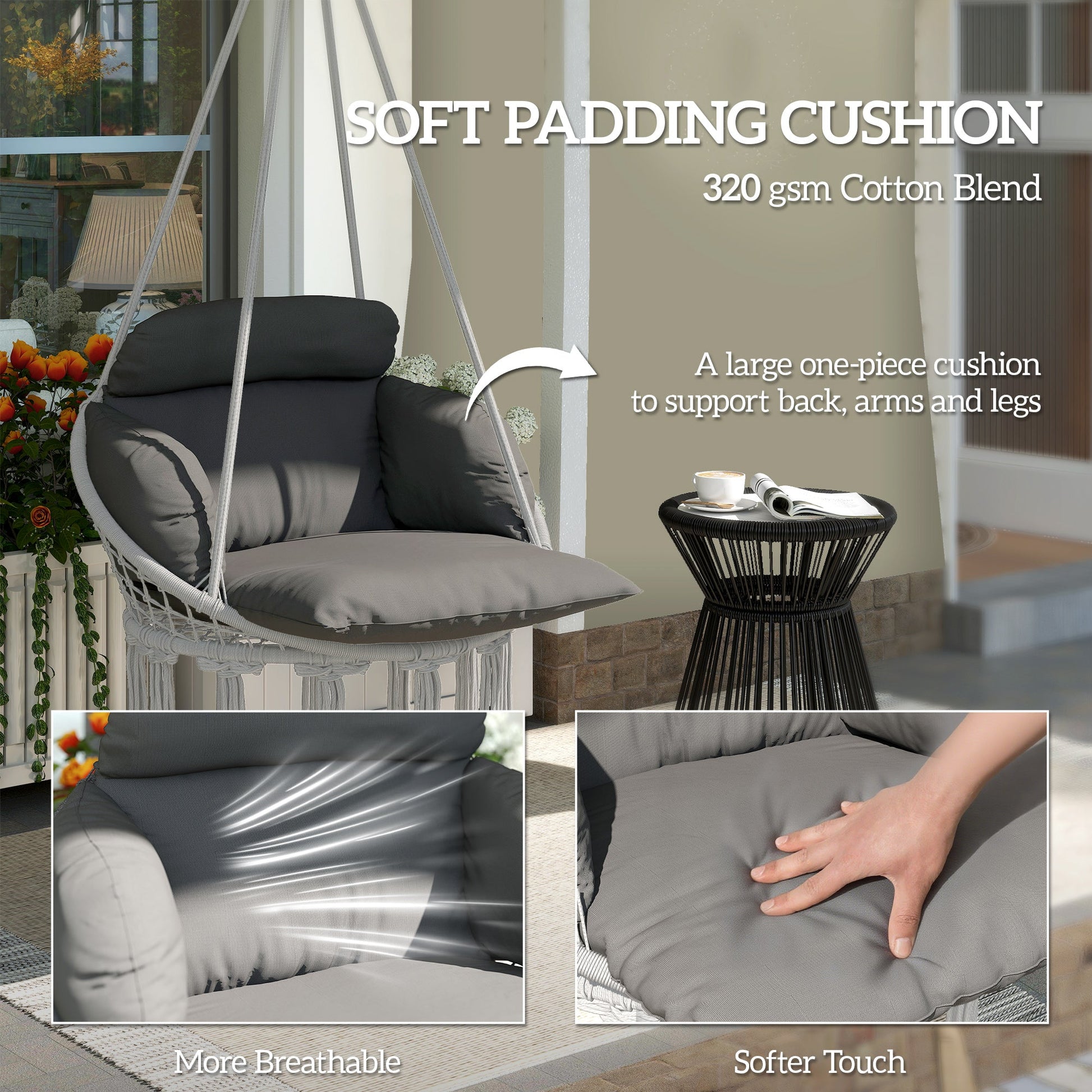 Outsunny Hanging Chair Outdoor Hammock Chair with Soft Cushion, Cotton Rope Boho Style Swing Chair, Hanging Garden Swing Seat for Indoor Outdoor, Dark Grey