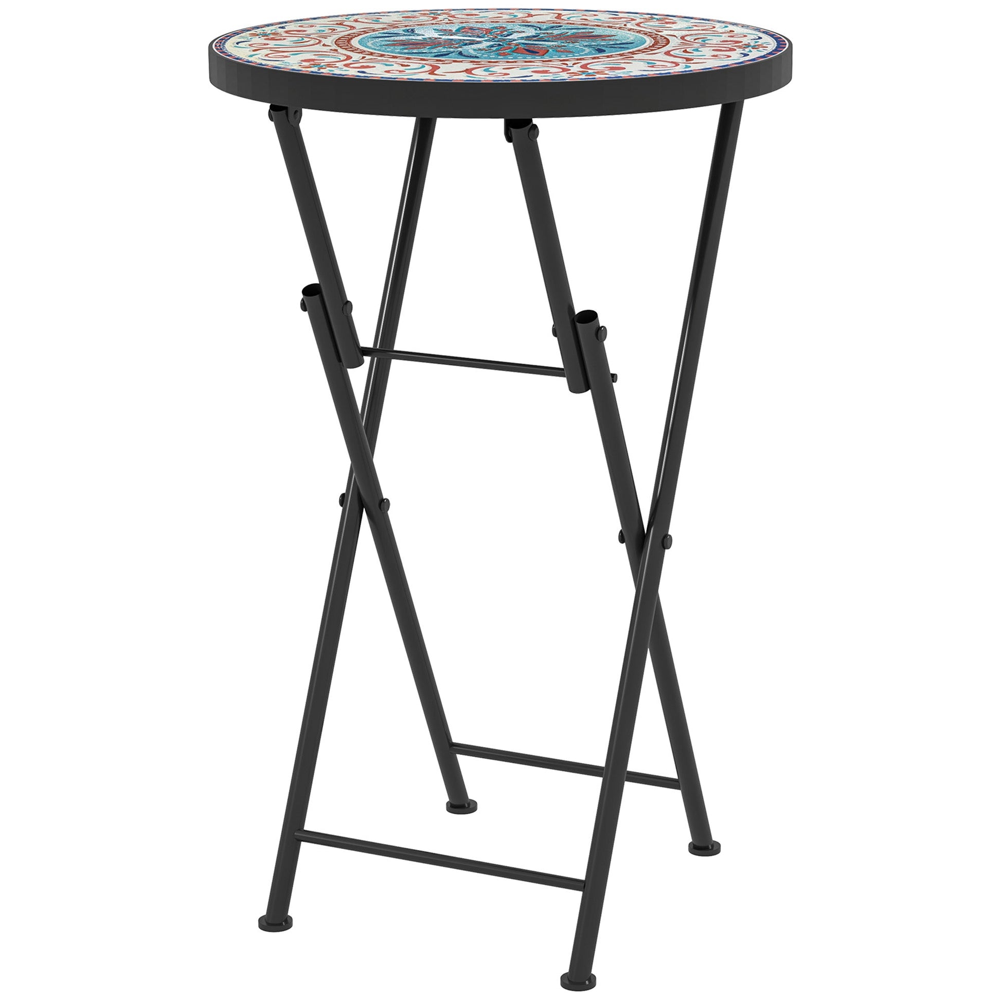 Outsunny Mosaic Outdoor Garden Table, 35.5cm Round Folding Coffee Table with Metal Frame for Balcony Terrace, Multicolour