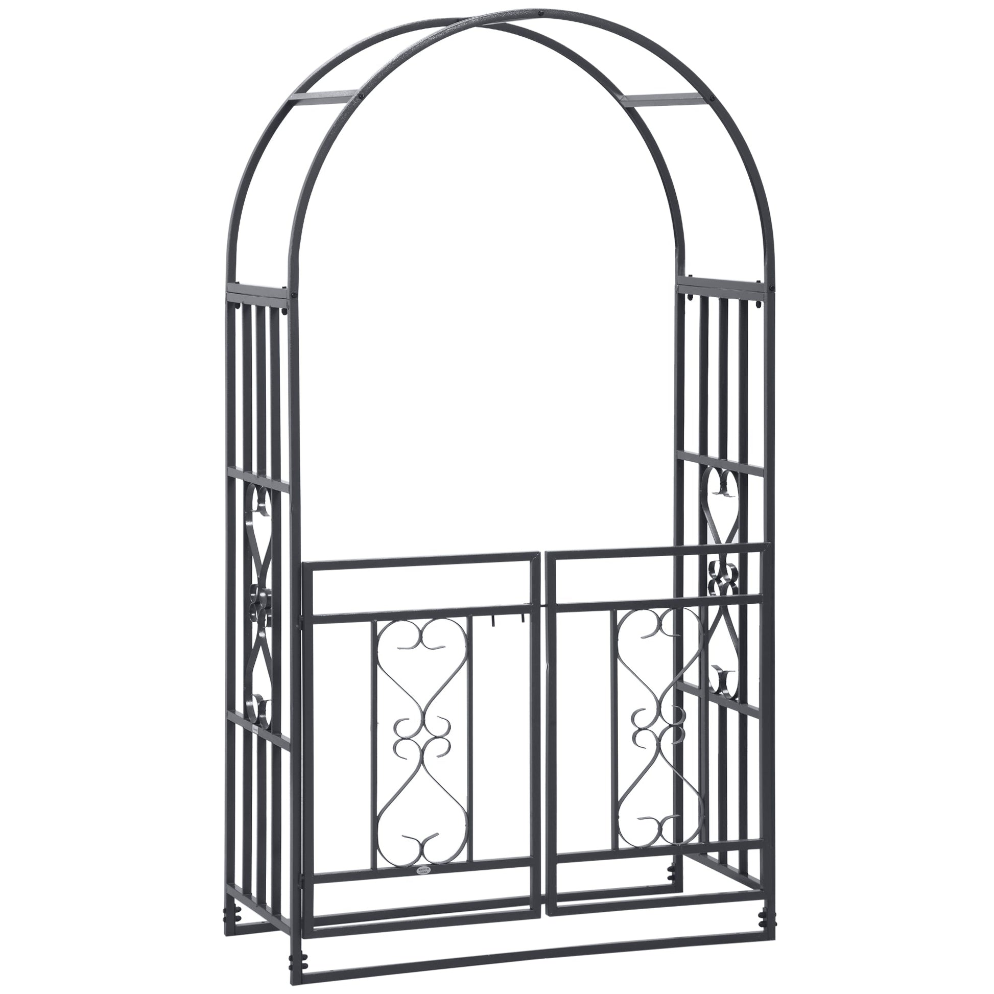 Outsunny Outdoor Garden Arch with Double Gates, Metal Garden Arbor for Climbing Plants, Roses, Vines, Wedding Arch for Outdoor, 114L x 50W x 206H cm, Dark Grey