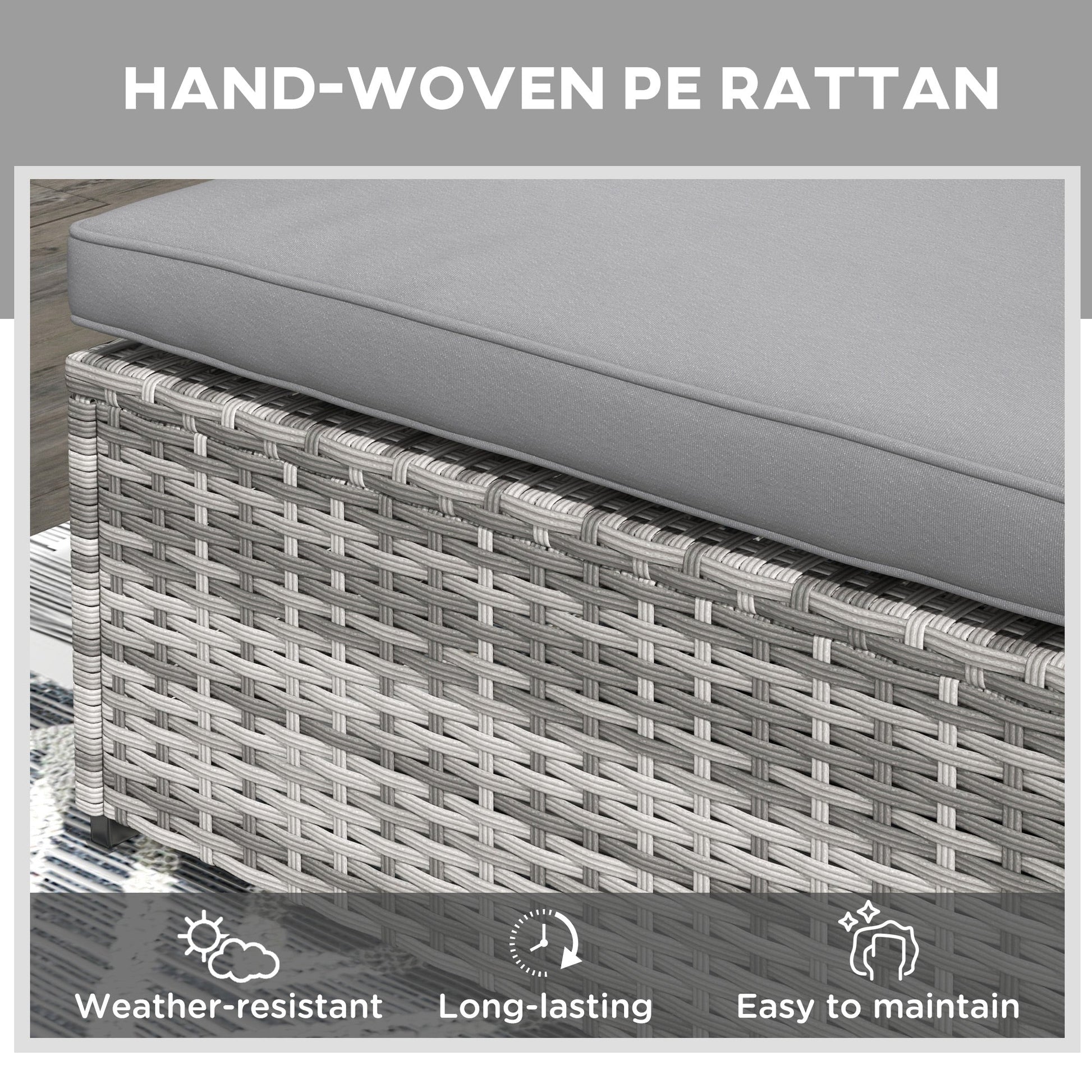 كرسي استرخاء خارجي من الروطان من Outsunny مع وسادة، كرسي استرخاء من الروطان الخوص قابل للإمالة على 5 مستويات مع صينية شاي، للاستخدام بجانب المسبح والفناء والشرفة، يتحمل وزن 120 كجم، باللون الرمادي