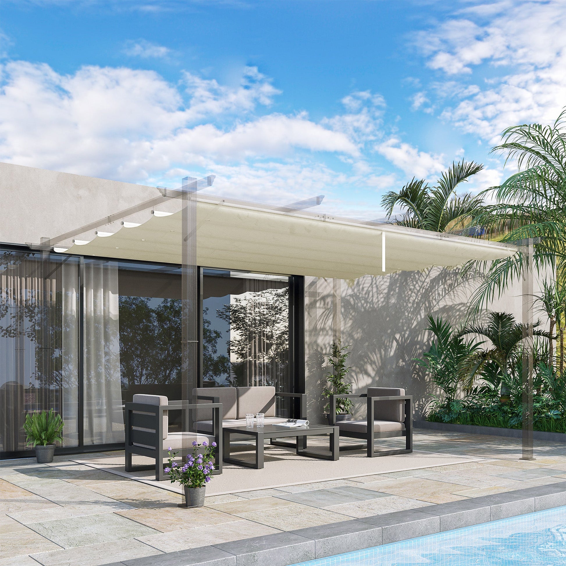 Outsunny Retractable Pergola Cover, 3.5 x 2.6 m Replacement Canopy Fabric for 4 x 3 m Frame, Roof Top Only, Cream White