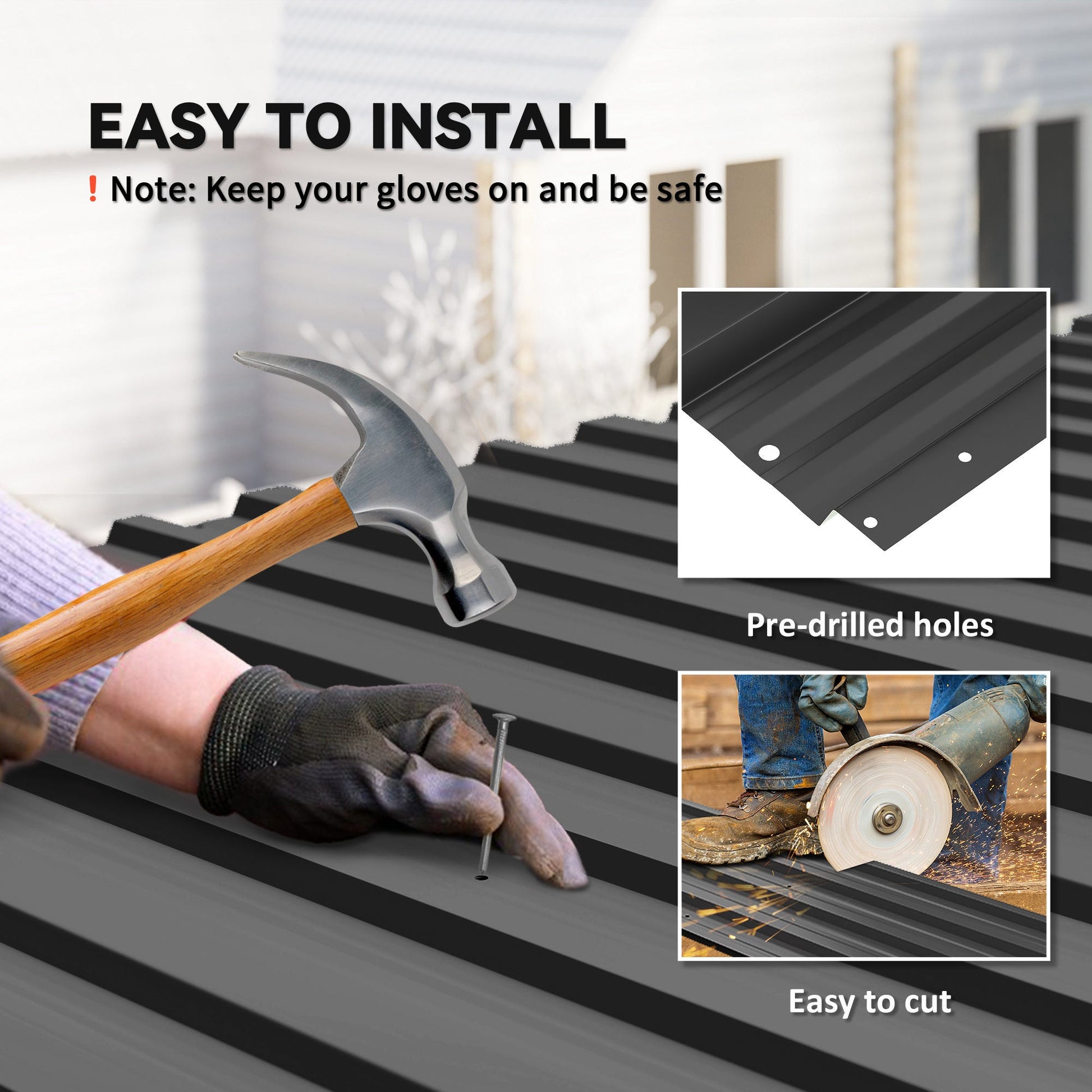 Outsunny Set of 12 Corrugated Steel Roof Sheet Panels - Black
