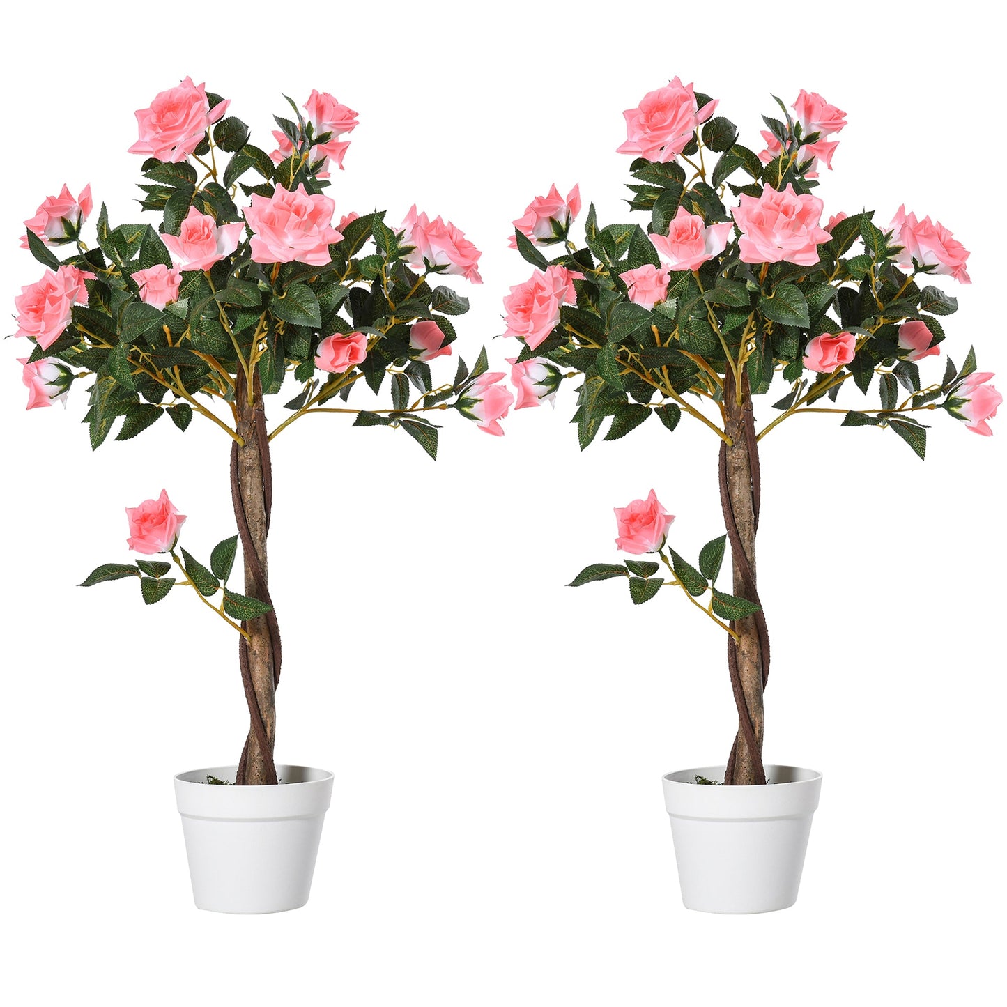 Outsunny Set of 2 Artificial Plants Pink Rose Floral in Pot, Fake Plants for Home Indoor Outdoor Decor, 90cm