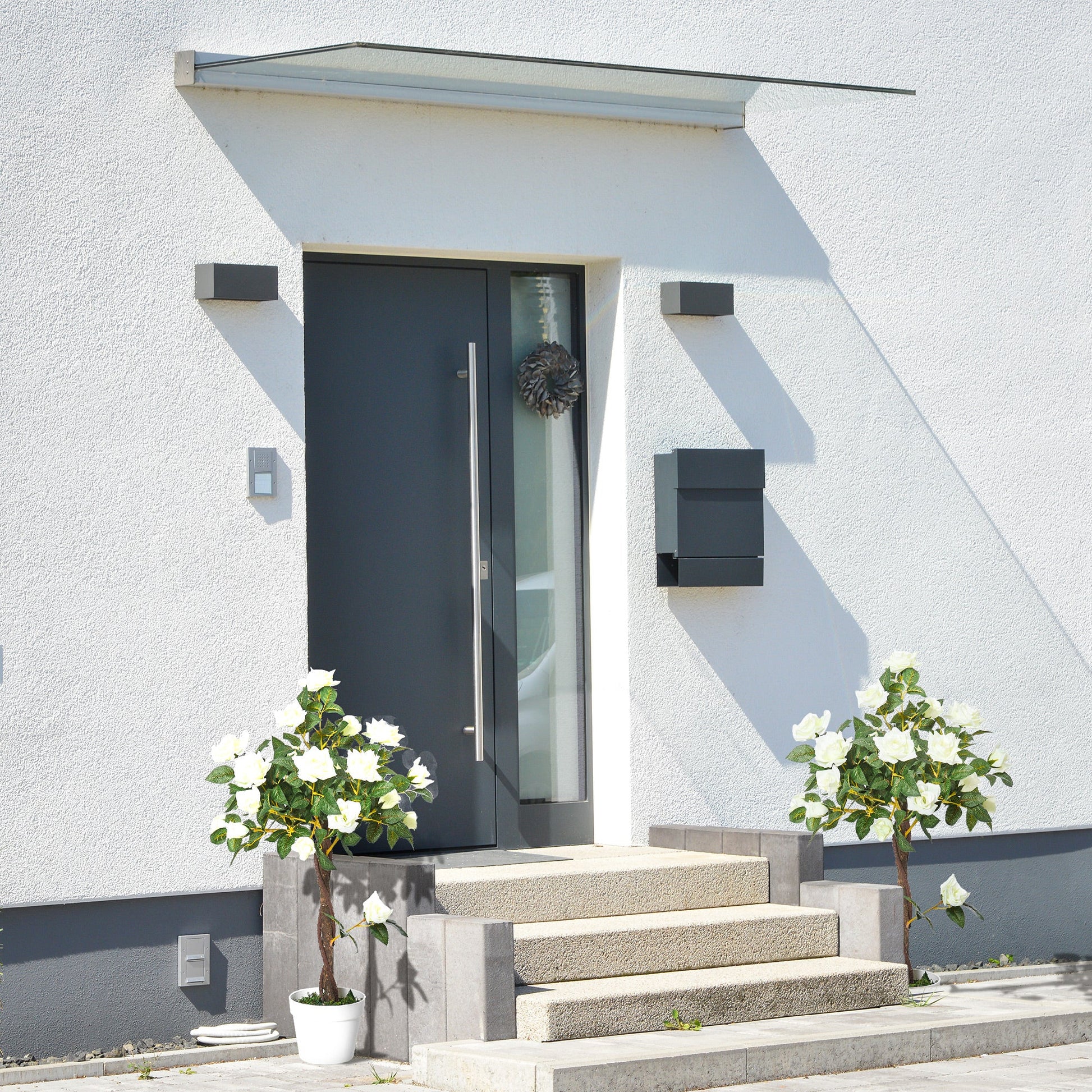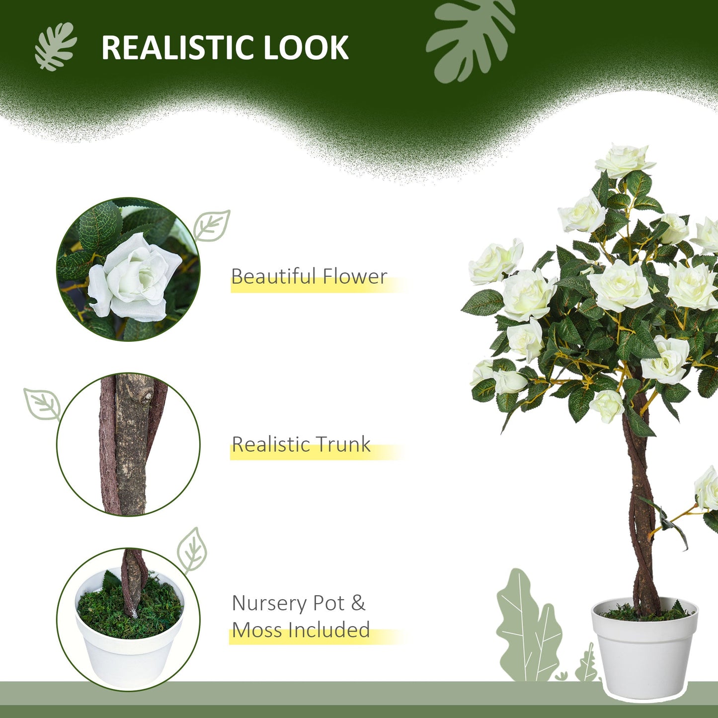 Outsunny Set of 2 Artificial Plants White Rose Floral in Pot, Fake Plants for Home Indoor Outdoor Decor, 90cm