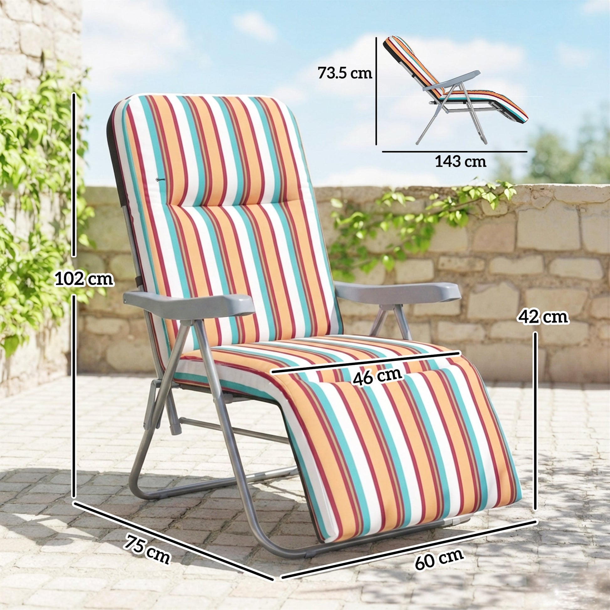 - Foldable padded garden lounger with 5 position reclining adjustment