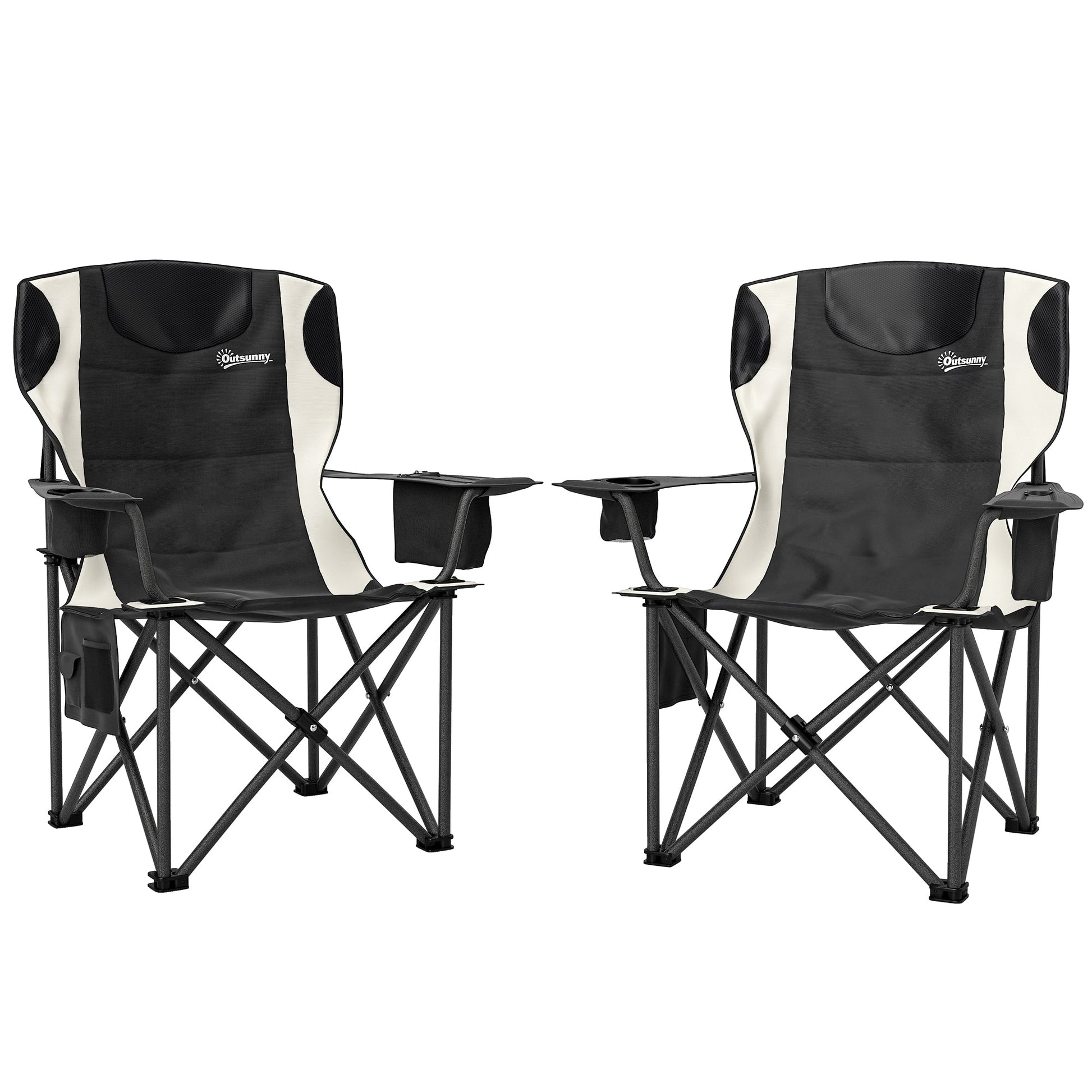 Outsunny Set of 2 Folding Camping Chairs, Padded Camping Chairs with Adjustable Armrests, Portable & Lightweight Folding Camp Chair with Cooler Bag, Cup Holder and Side Pockets, Black