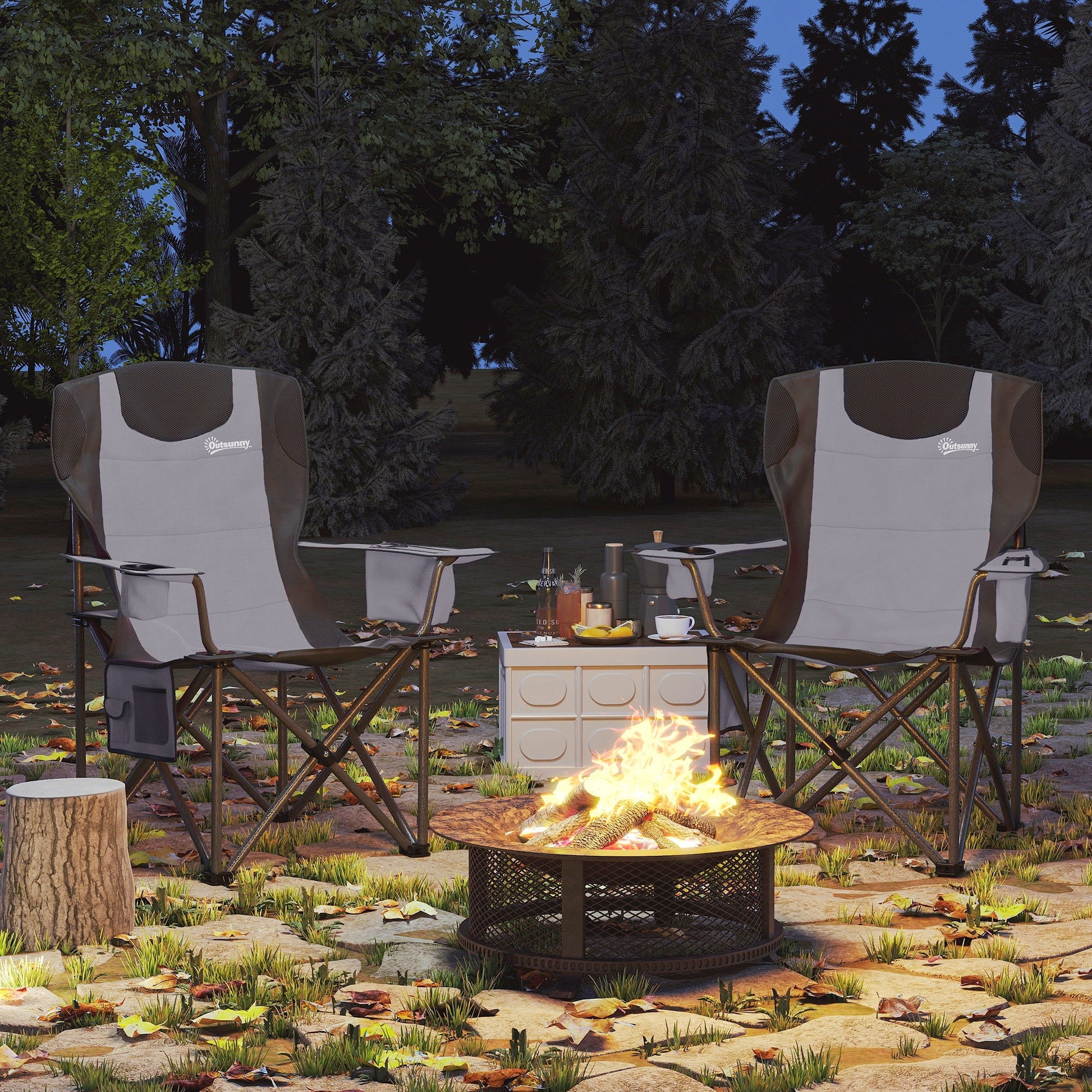 Outsunny Set of 2 Folding Camping Chairs, Padded Camping Chairs with Adjustable Armrests, Portable & Lightweight Folding Camp Chair with Cooler Bag, Cup Holder and Side Pockets, Grey