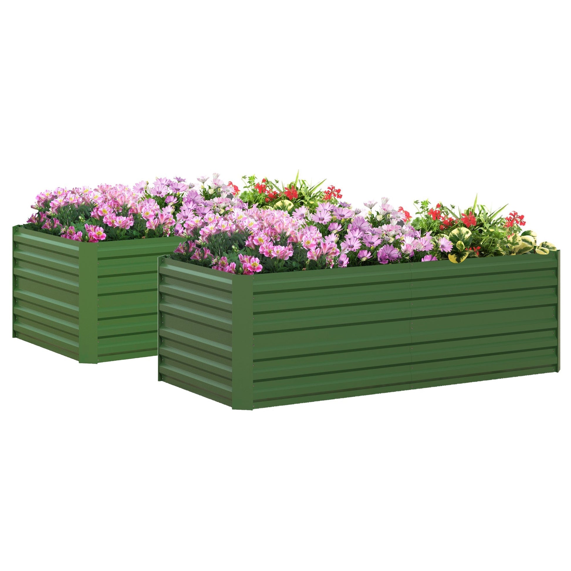 Outsunny Set of 2 Raised Beds for Garden, Galvanised Steel Outdoor Planters with Multi-reinforced Rods for Vegetables, Plants, Flowers and Herbs, 180 x 90 x 59 cm, Green