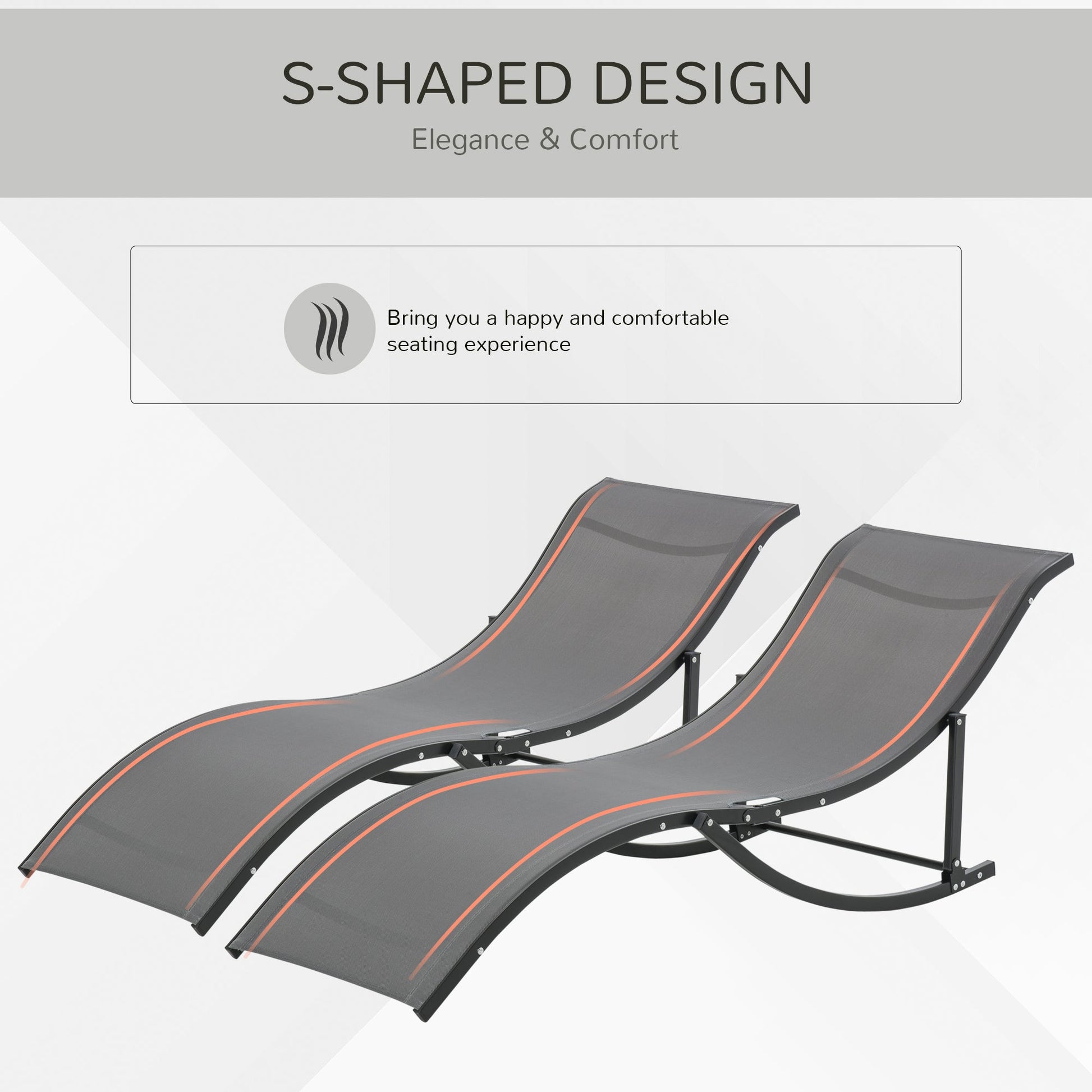 Outsunny Set of 2 S-shaped Foldable Lounge Chair Sun Lounger Reclining Outdoor Chair for Patio Beach Garden, Grey