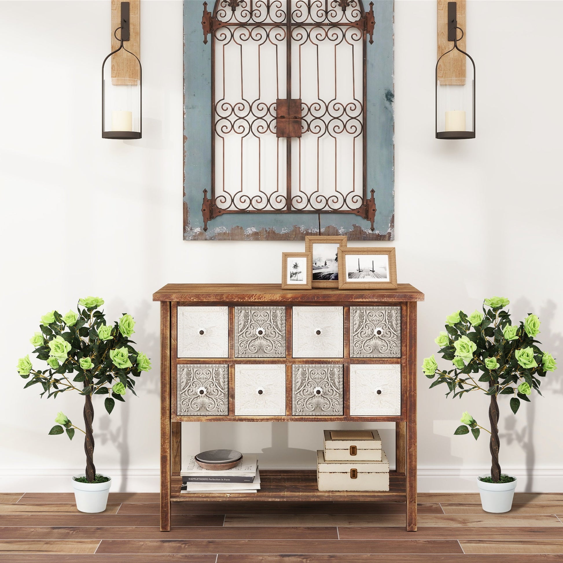 مجموعة Outsunny من شجرتي ورد صناعيتين - باللون الأخضر