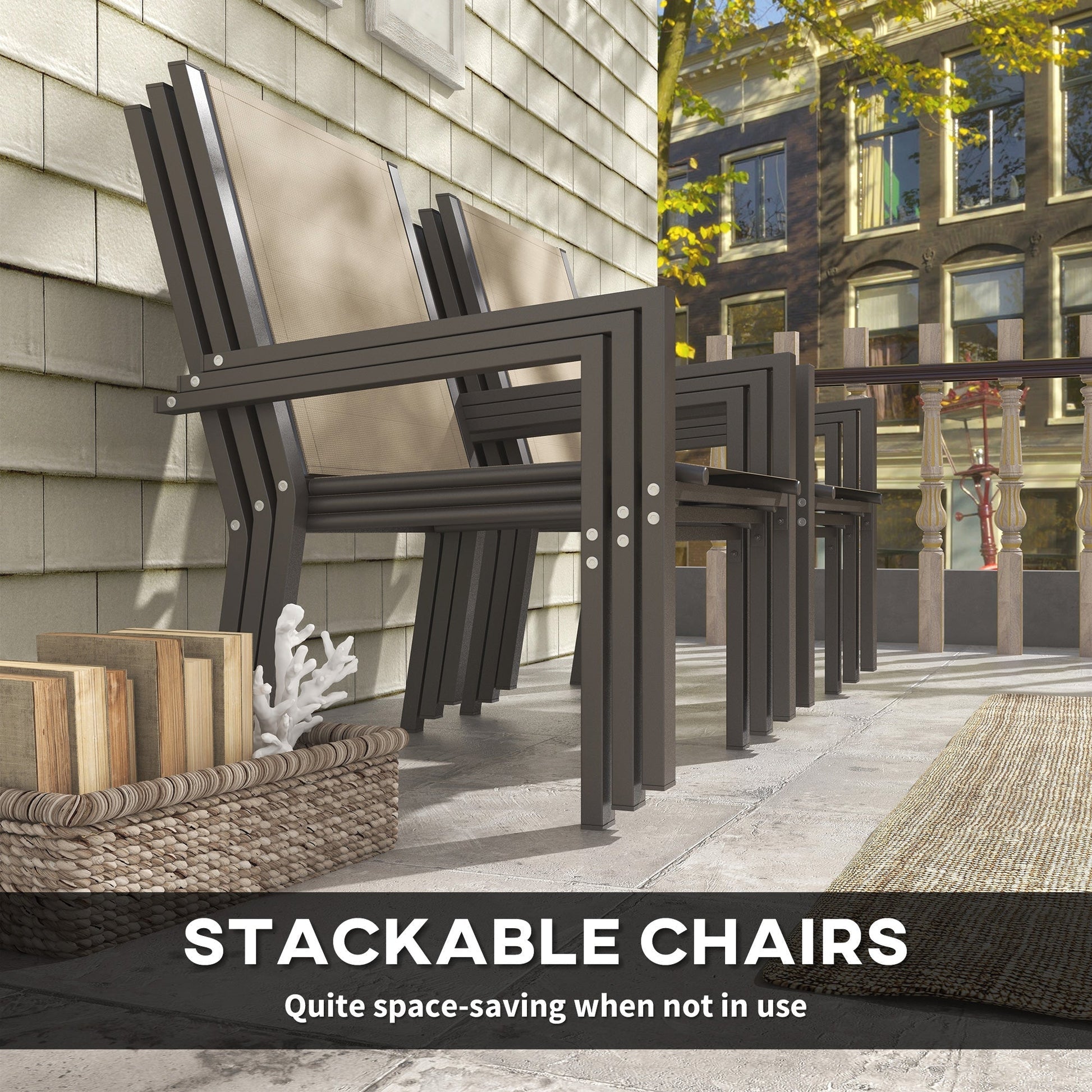 Outsunny Seven-Piece Garden Dining Set, with Plastic Wood-Top Table - Brown