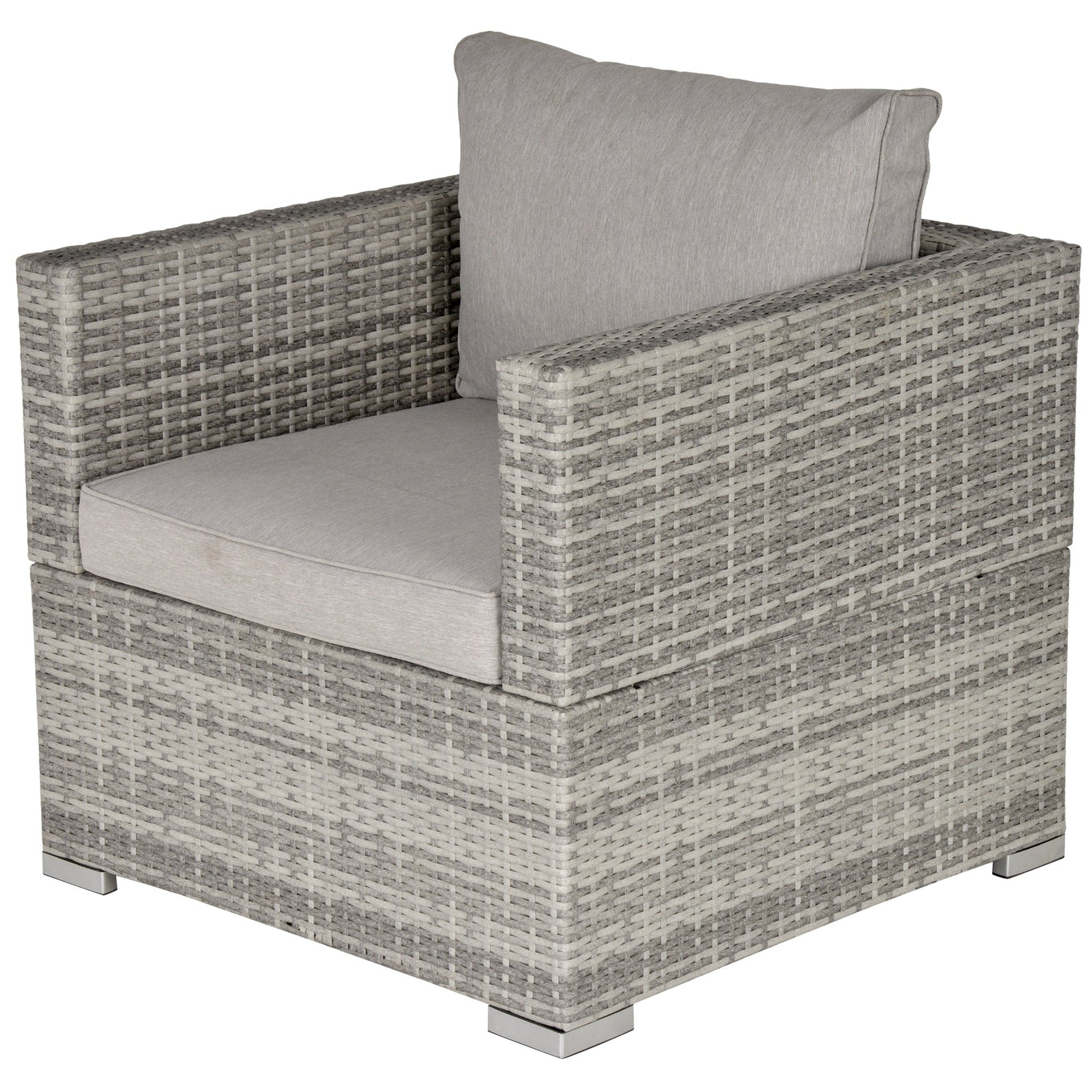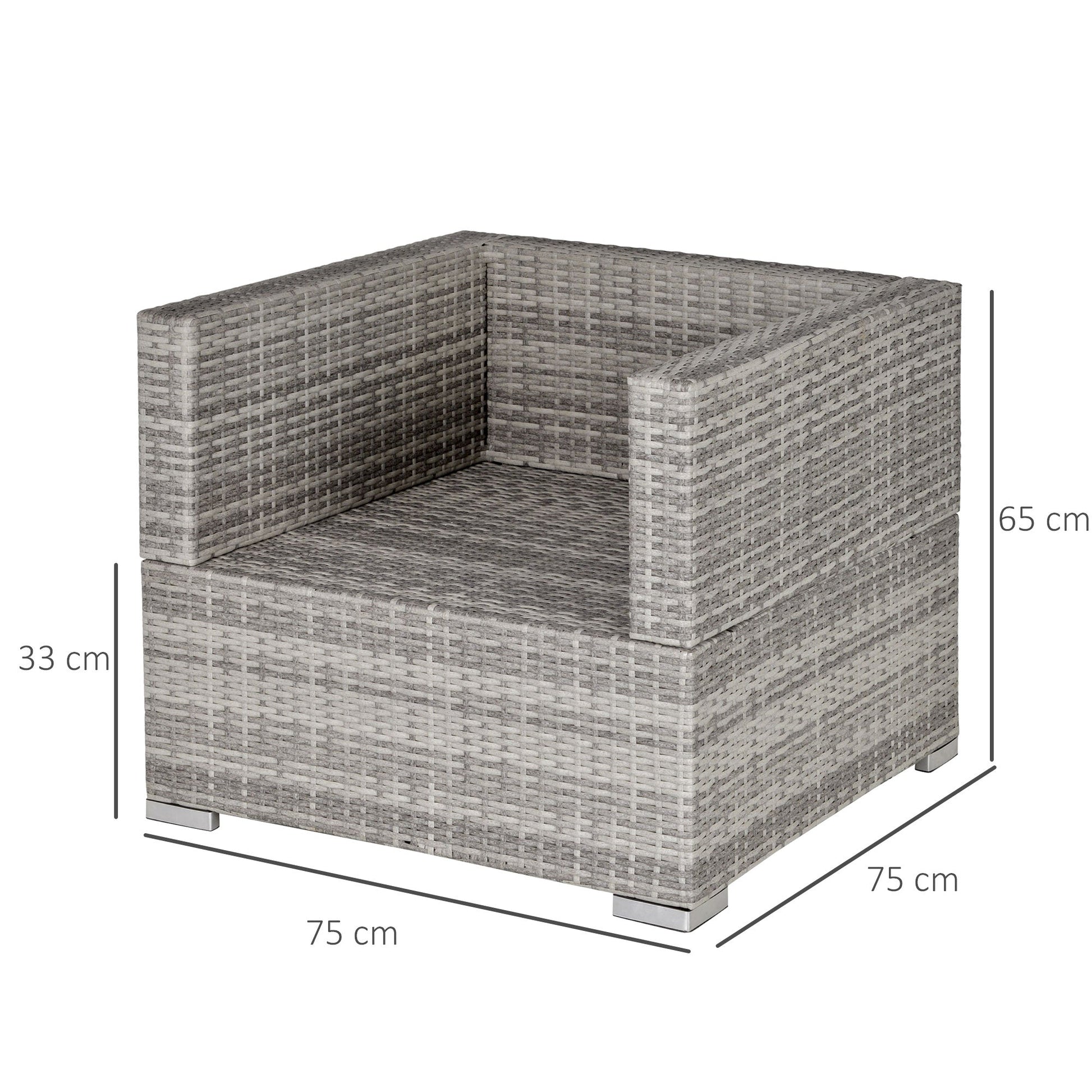 Outsunny Single Seater Rattan Chair Sofa with Padded Cushions, All-Weather PE Wicker Weave Garden Armchair with Armrests, Grey