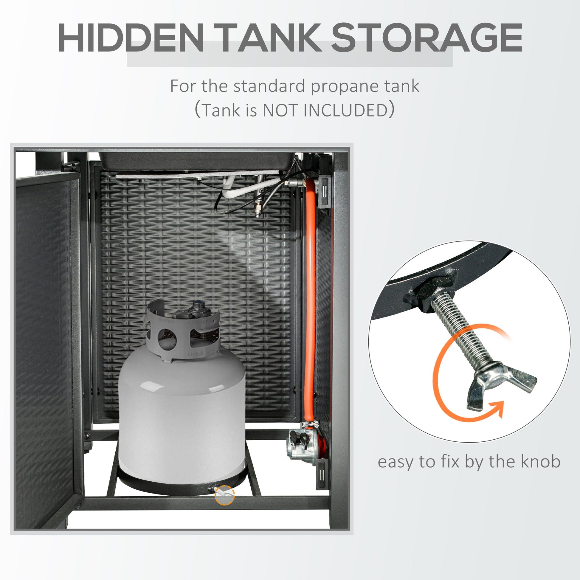 - Practical door to conceal and allow easy access to the propane tank
