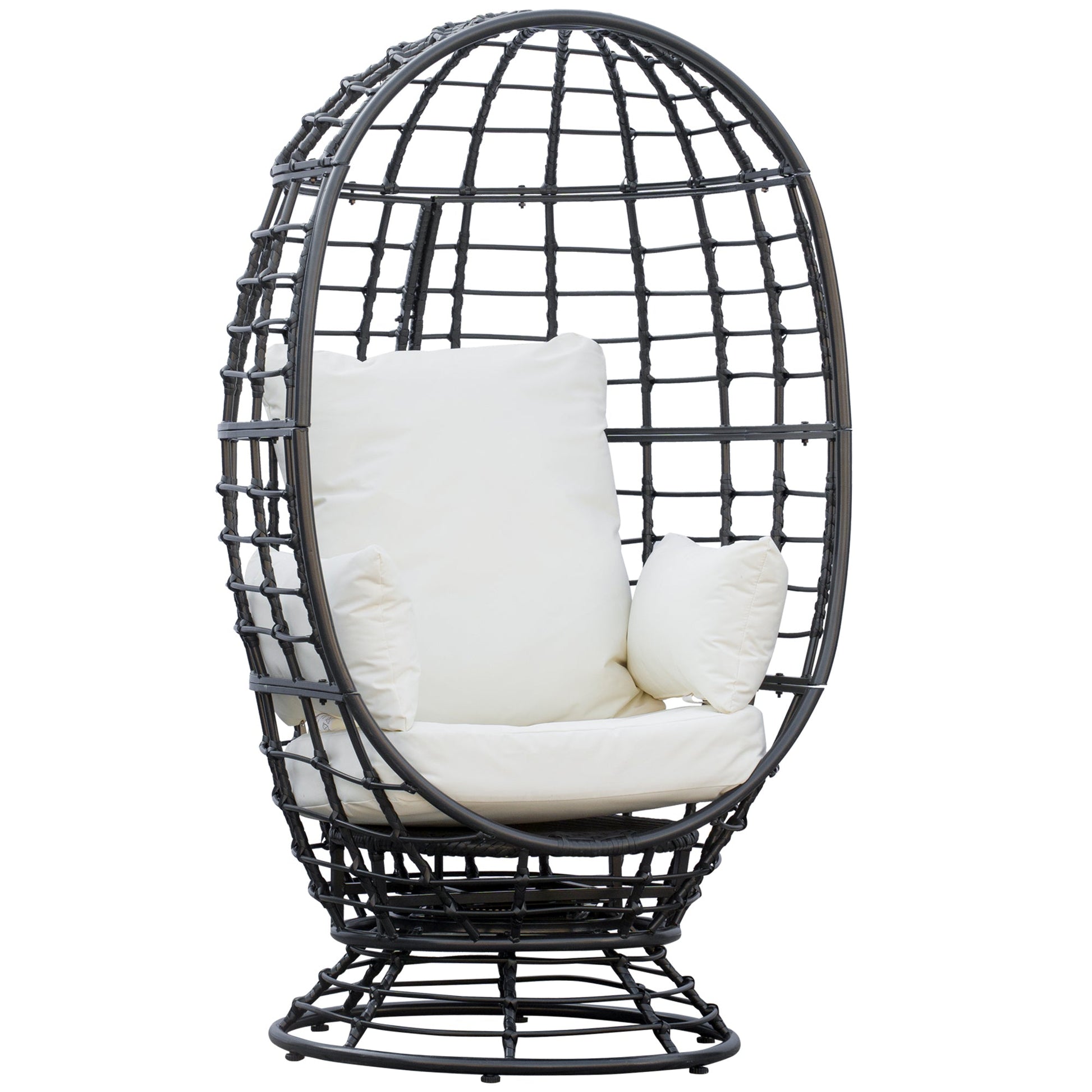 Outsunny 360 Swivel Egg Chair, Garden Rattan Swivel Chair with Thickened Cushion and Pillow, 150 KG Capacity for Indoor Outdoor, Balcony, Patio, Black