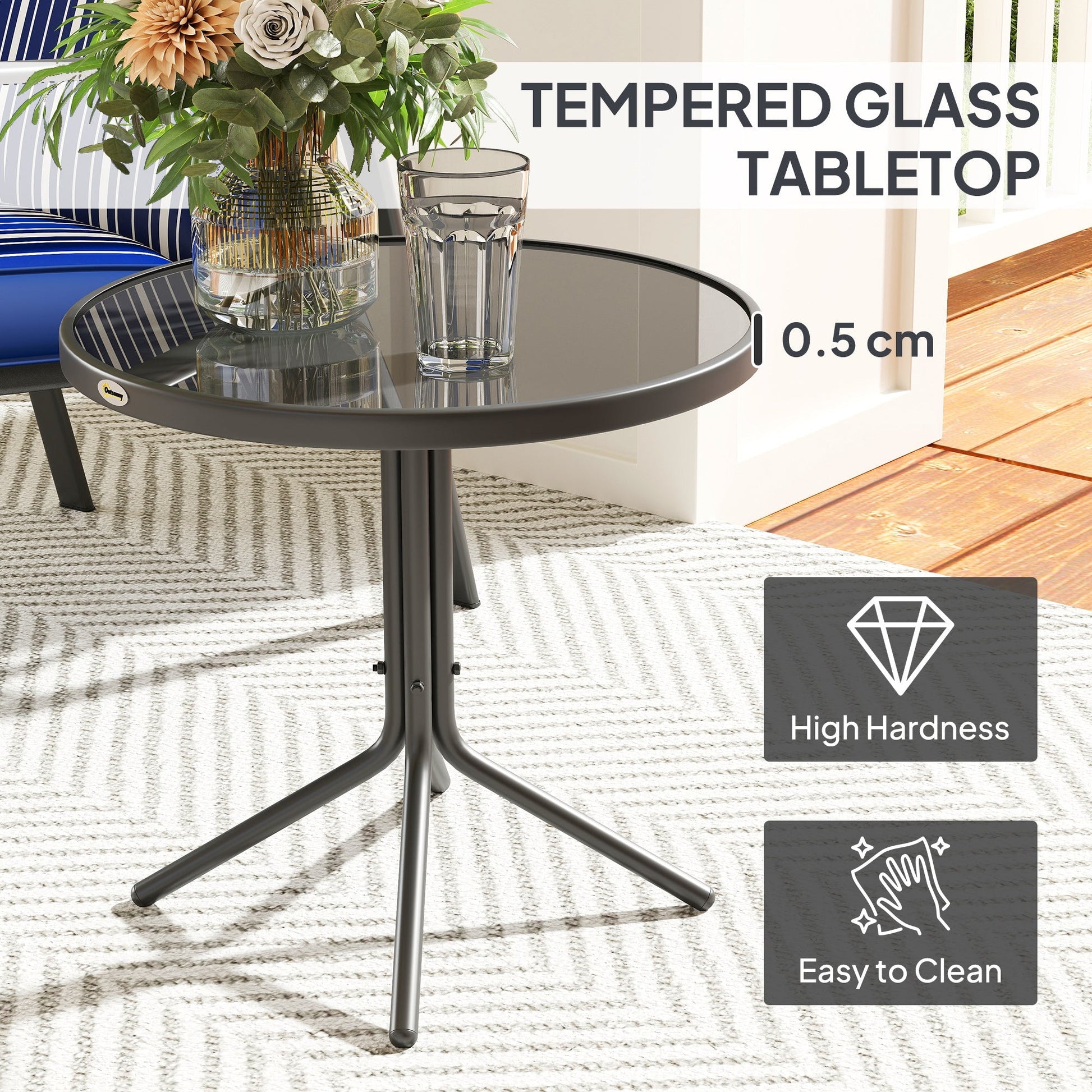 This Outsunny three-piece ensemble comes with two reclining chairs, with a tempered glass-top table. Both chair back are adjustable to five adjustable positions - pick the angle you want. All frames are made from powder-coated metal for plenty of strong support. Complete with padded seat and back cushions for comfort.