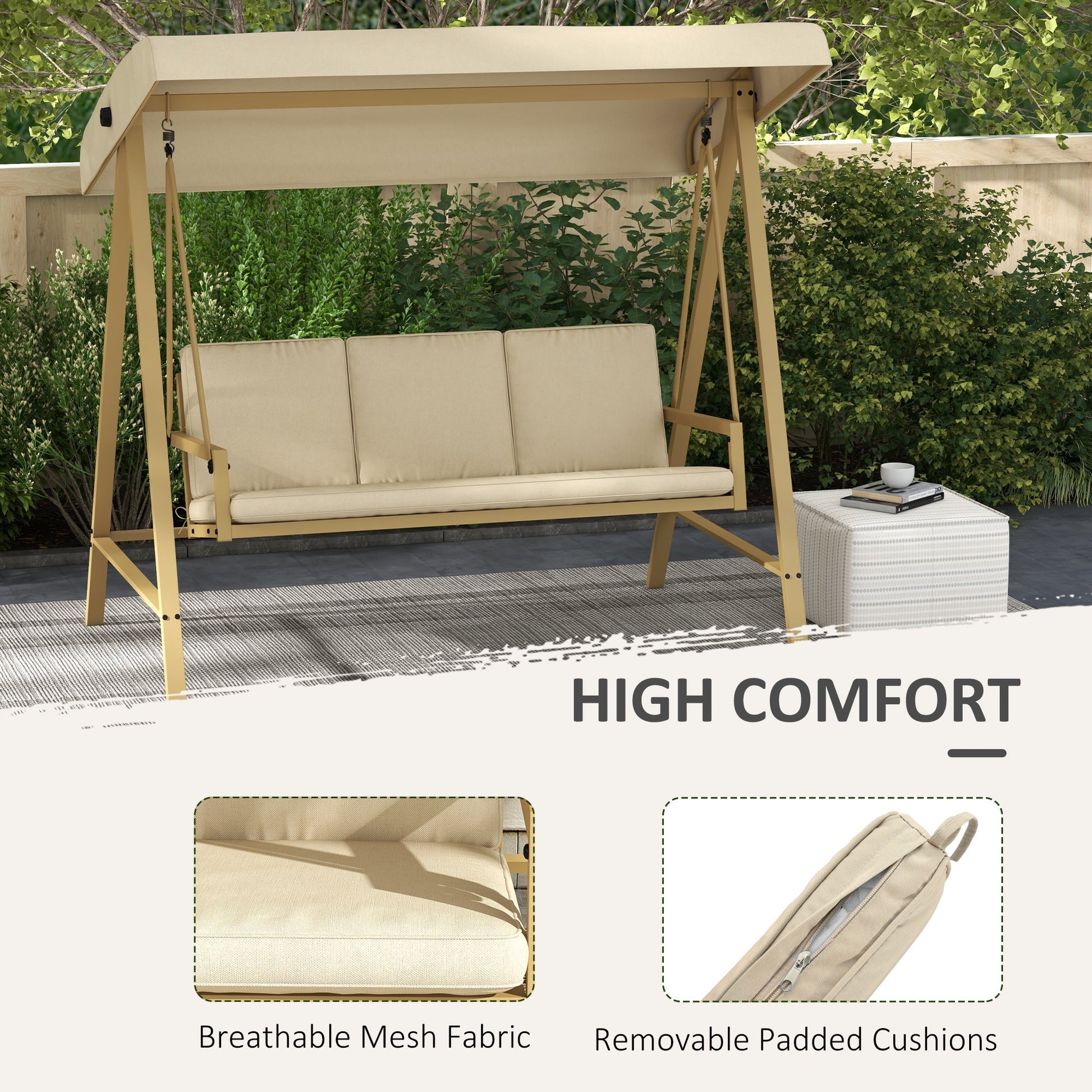 كرسي أرجوحة للحديقة بثلاثة مقاعد من Outsunny، مع مظلة قابلة للتعديل - بيج
