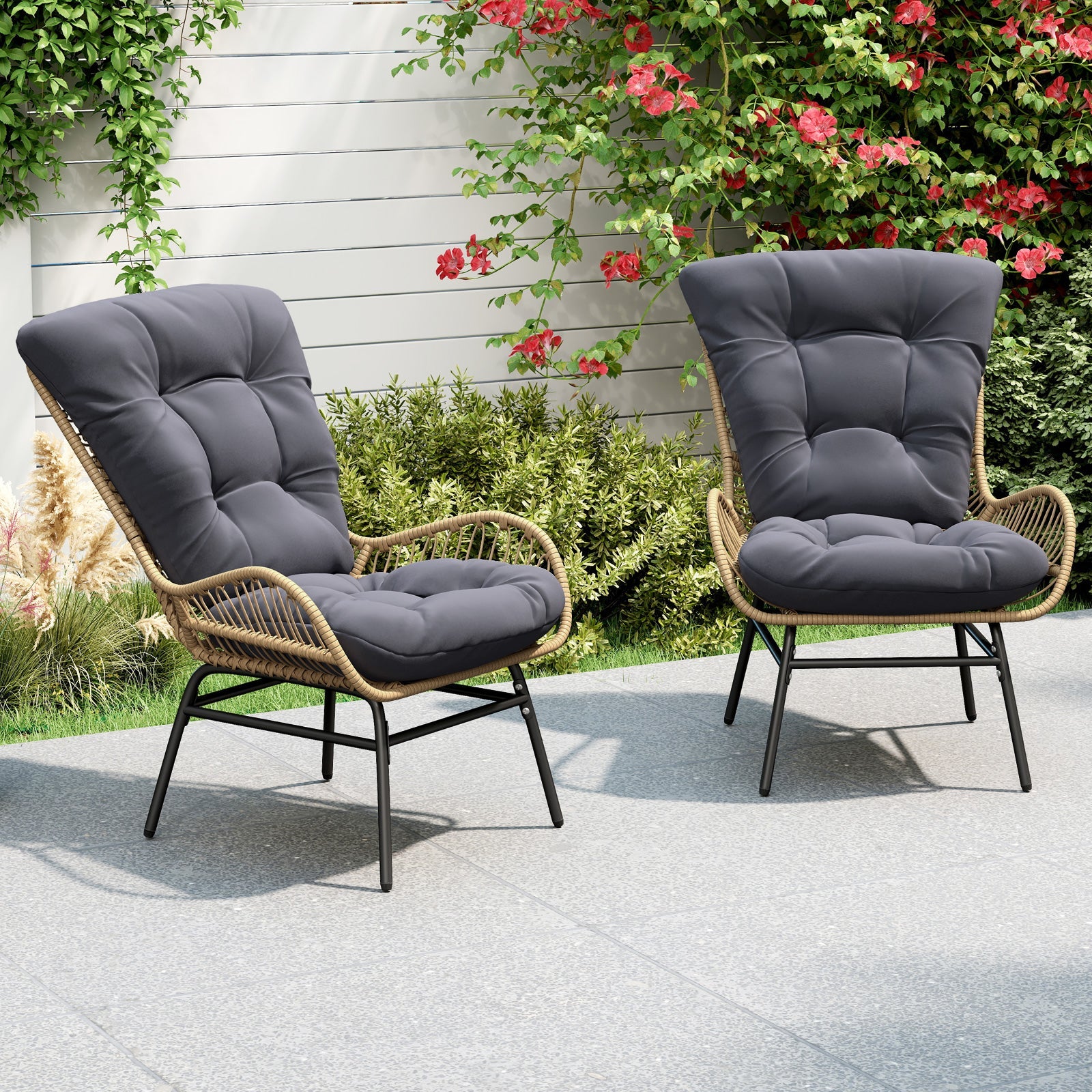Patio Wicker Chair Outdoor Rattan Dining Chair with Soft Cushion-Grey