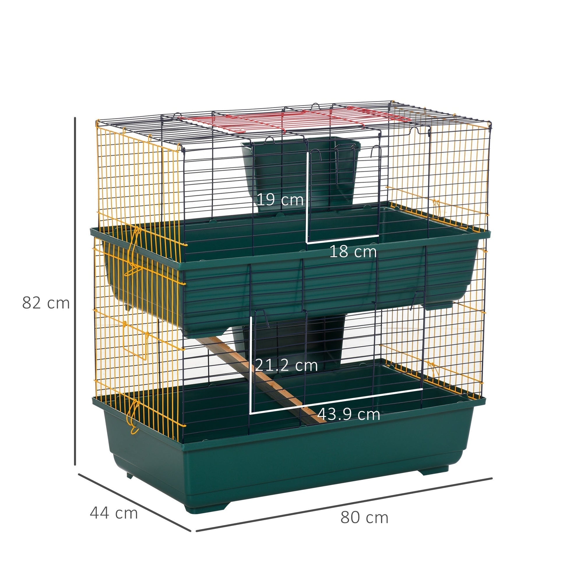 Give your small pet their own place to chill the day away with this 2-tier cage from PawHut. Our small animal cage is the perfect home for small animals like bunny, guinea pig, pet mink, chinchilla and other similar sized small pets. 2-tier design provides large living space for your pet to rest and play. 2 hay feeders included for your pet's daily necessities. 3 doors included allows an easy access to the inside area for maintenance. Also features ramp to complete this cage. Keep them safe, keep them secure, but also keep them active and occupied for a long life worth living.