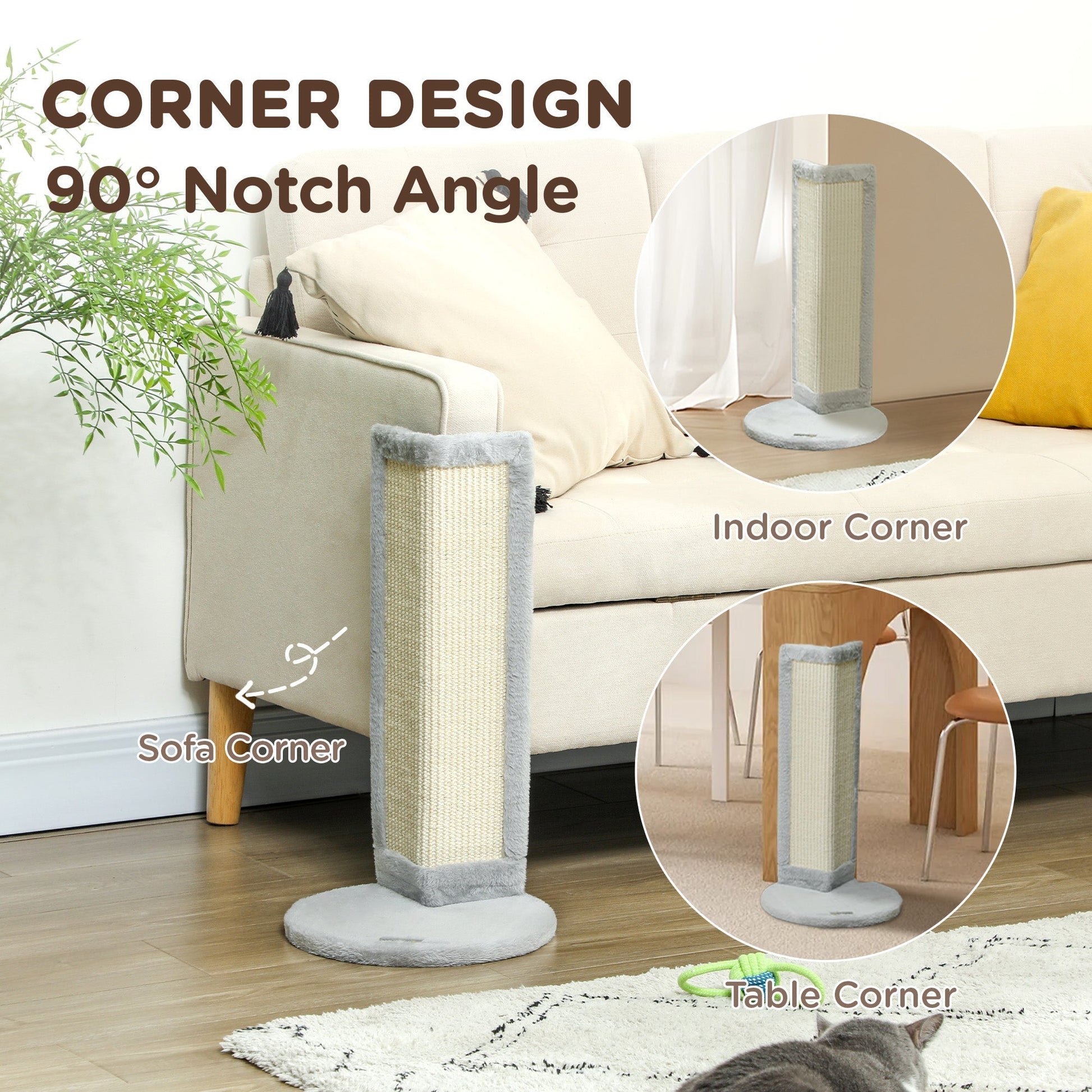 PawHut 56cm Corner Cat Scratching Post with Sisal Scratching Pad, Grey