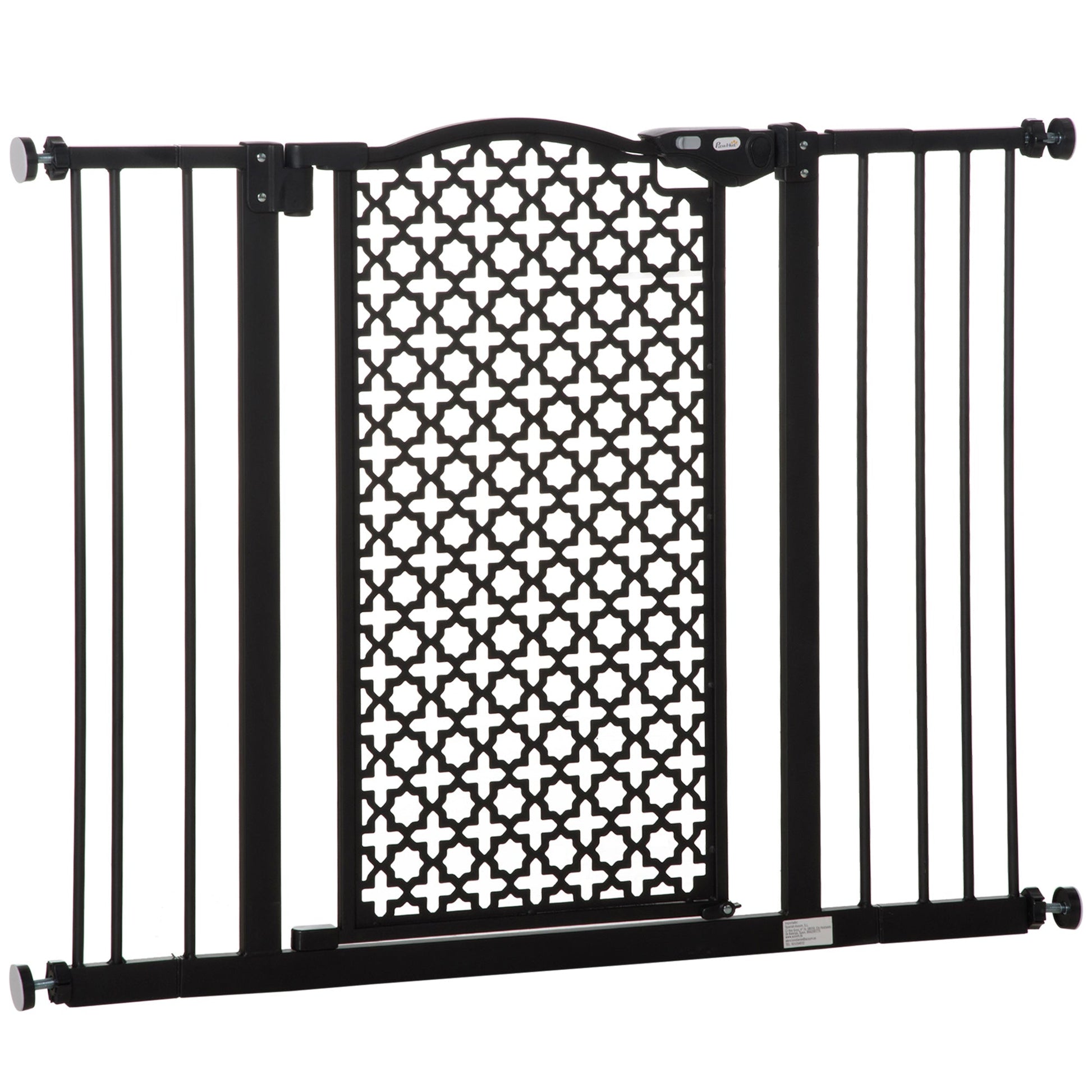 PawHut 74-105cm Pet Safety Gate Stair Barrier, with Auto Close, Double Locking - Black