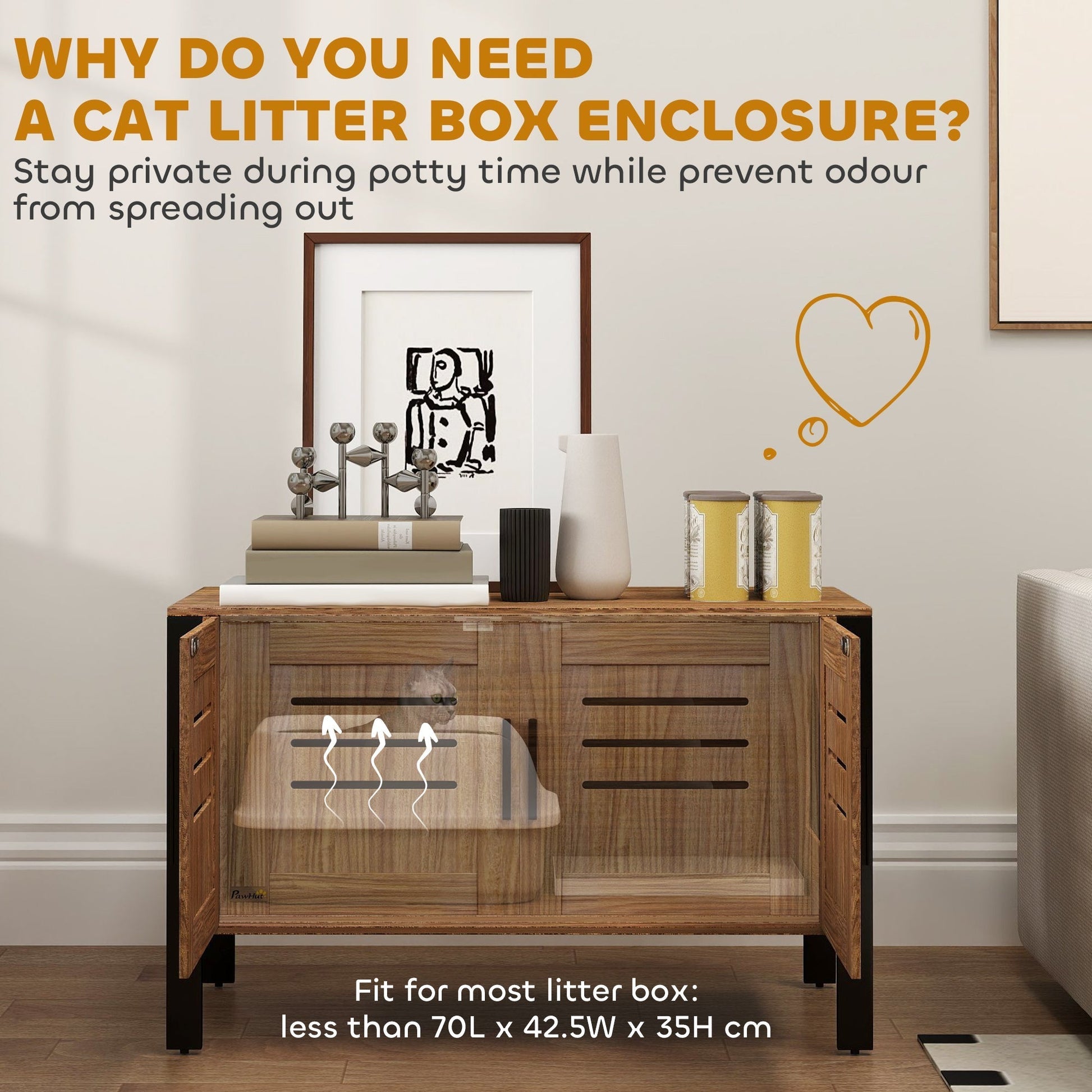 Transform your cat's litter routine with the PawHut Cat Litter Box Enclosure! This stylish piece doubles as elegant furniture, cleverly concealing a cat litter enclosure while enhancing your decor. Enjoy a cleaner, fresher home with this chic solution that merges functionality with aesthetics, making it a must-have for any cat owner seeking a blend of privacy and style.
