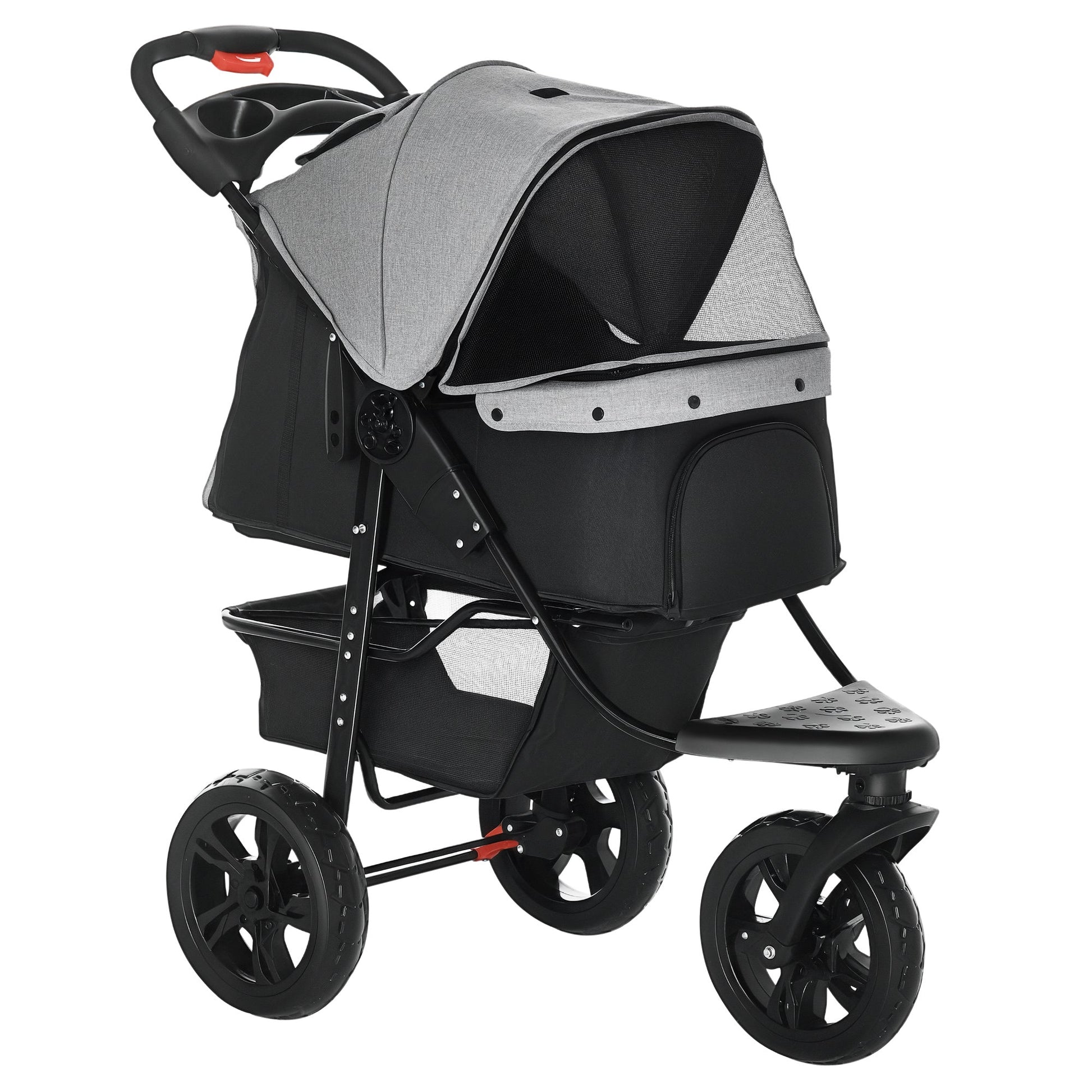 PawHut Dog Stroller Pram, 3-Wheel Foldable Pet Stroller with Invisible Sky Roof, for Small Dogs & Cats, Red
