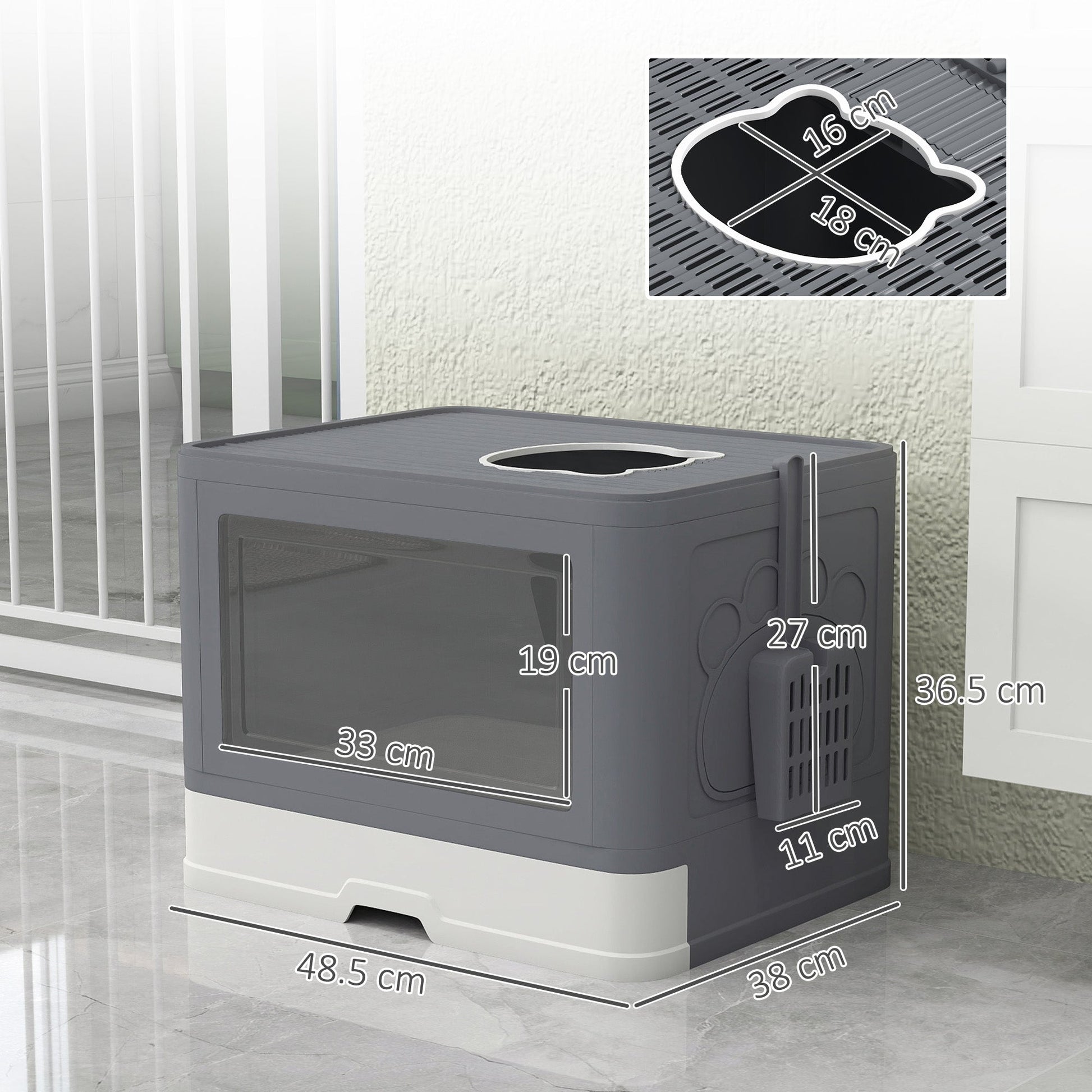 PawHut Enclosed Cat Litter Box with lid, Front Entry, Top Exit, Drawer, Tray, Scoop, Brush, 48.5 x 38 x 36.5cm - Grey