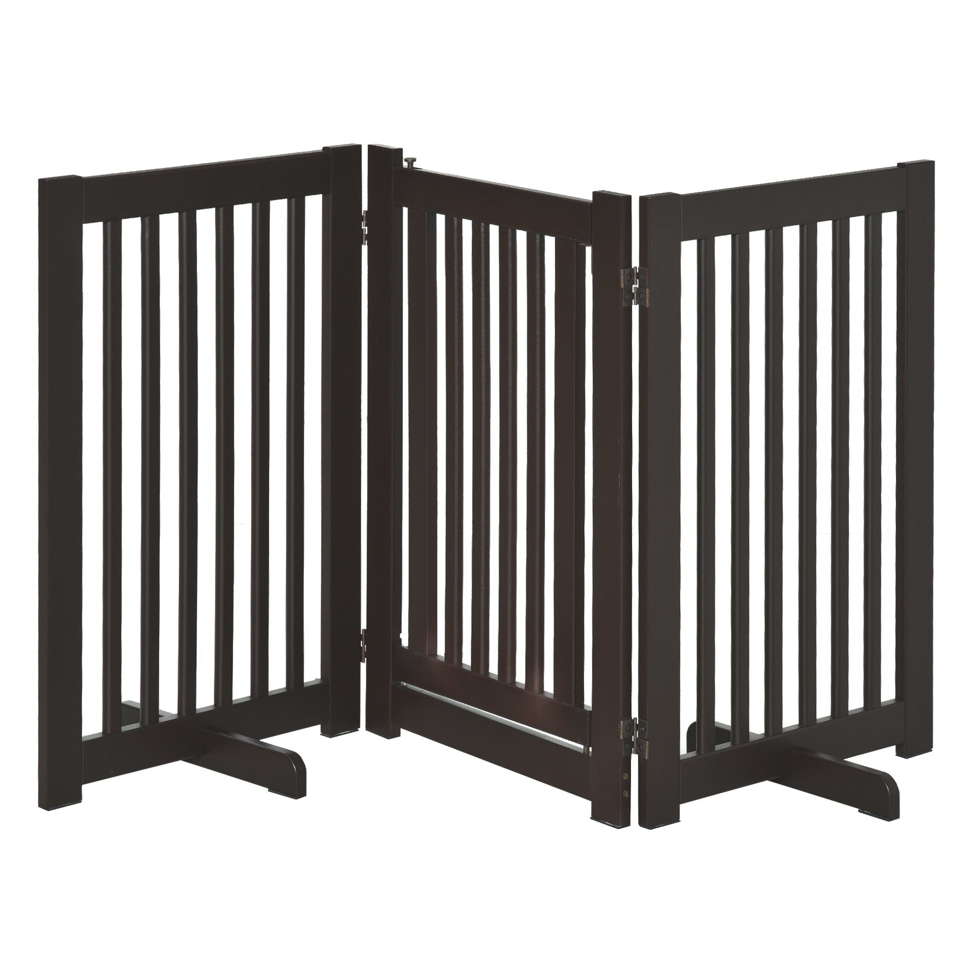 PawHut Freestanding Dog Gate, Foldable Pet Fence, Indoor Barrier, Stair Gate with Support Feet, 155 x 76 cm, Brown