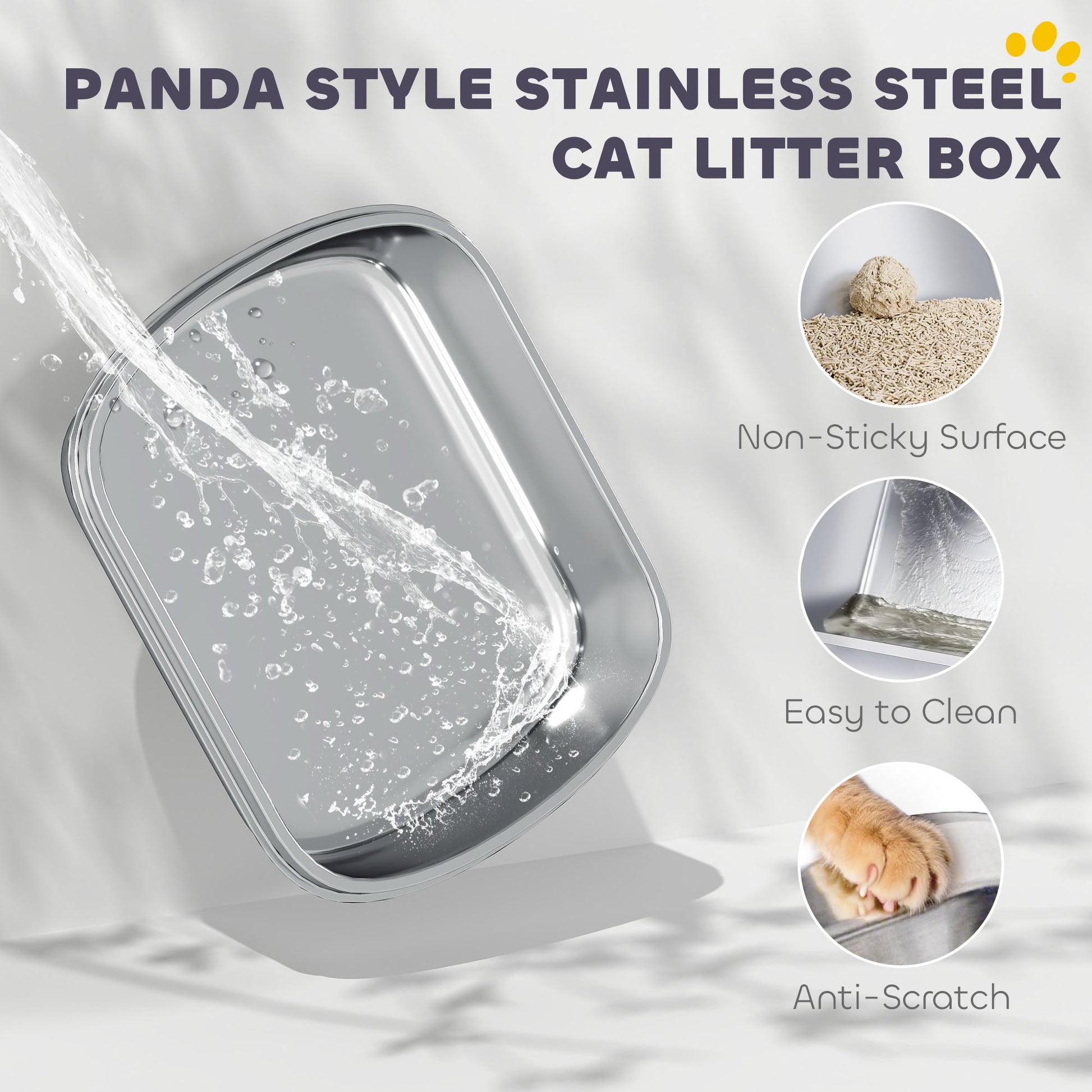 Transform your home with the PawHut stainless steel litter box, featuring a charming panda design that adds a playful touch. Tired of the hassle of cleaning? The 180-degree flip-top lid simplifies your routine, making it stress-free. Plus, its spacious inner ensures your cat's comfort, even for the largest breeds. Enjoy a tidier, more joyful living space with this delightful addition.