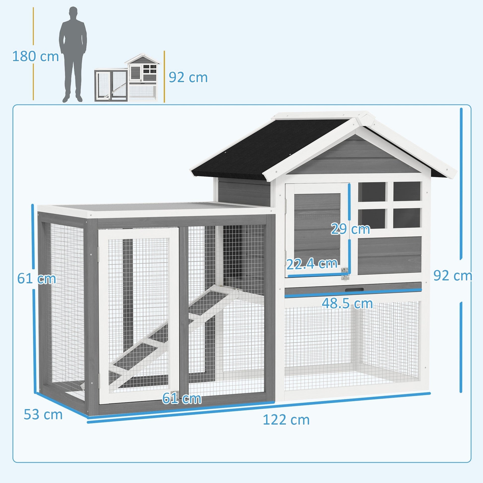 PawHut Rabbit Hutch Outdoor Wooden Guinea Pig Hutch Rabbit Run Bunny Cage Small Animal House Pull-Out Tray, Grey, 122 x 62.6 x 92 cm