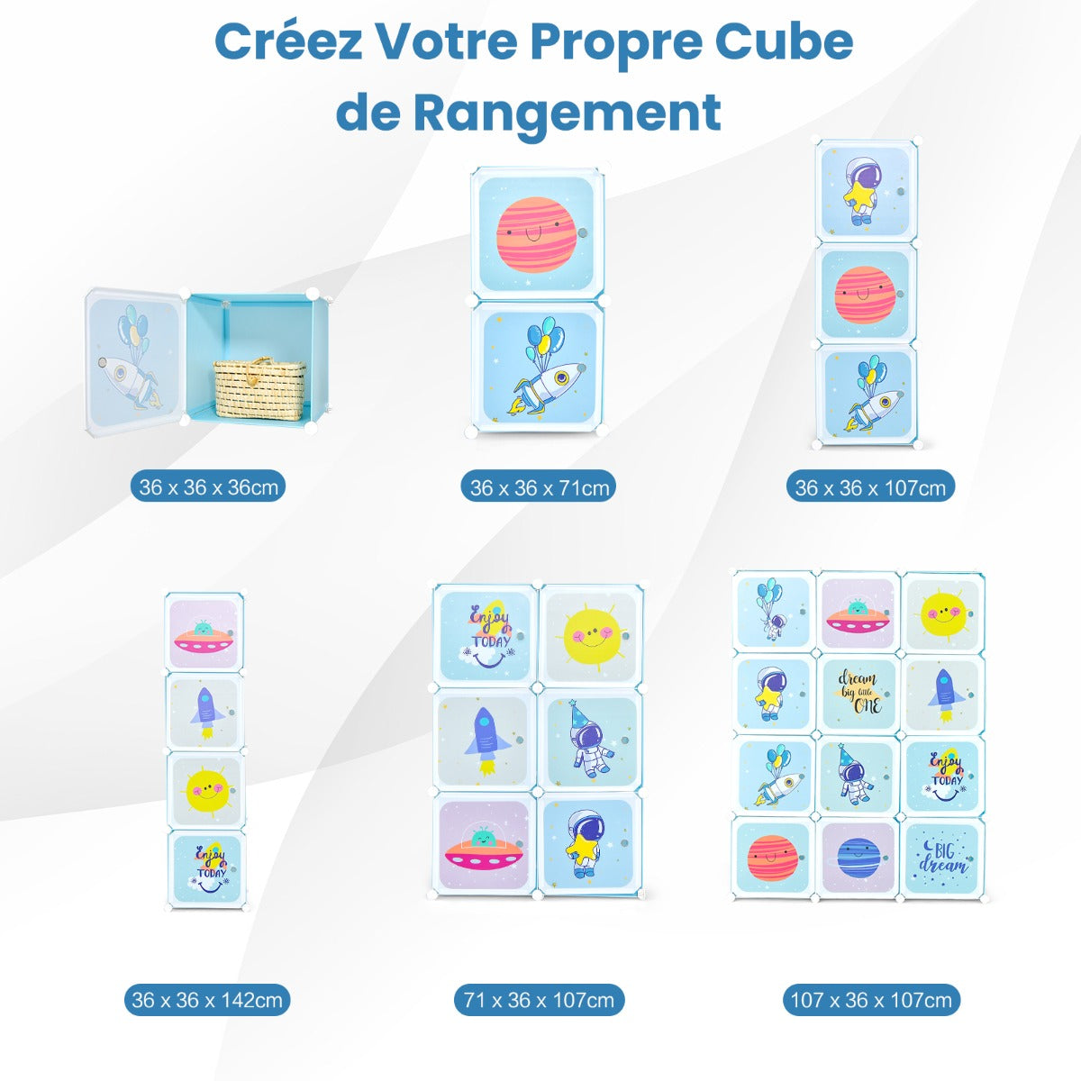 Are you still looking for a versatile and spacious children's wardrobe? Then, our wardrobe offers a perfect solution for organizing your child's clothes, shoes, accessories, and toys. With 8 storage compartments and 2 hanging sections, this wardrobeprovides different sizes of storage areas to accommodate a wide variety of items. Designed to bring convenience and flexibility, it is built with a customized structure that allows you to design your own storage cube. Whether used separately or stacked, the cubes can be combined into a variety of different blocks to fit different spaces, ensuring easy organization and maximizing storage potential. If you are looking for a PortableChildren Wardrobe like this, do not hesitate to place an order! Versatile andSpacious Storage:Thiskids wardrobe offers 8 storage compartments and 2 hanging sections, providing different sizesofstorage areasto accommodate a wide variety of items. Organize your child's clothes, shoes, accessories, and toys with ease. Customized Structure: With its flexible connection design, this wardrobe allows you to design your own storage cube. The cubes can be used separately or stacked, combined into a variety of different blocks to fit different spaces, providing flexibility and convenience. FunnyandPortable Design:Each of the 12 cube storage cabinet doors features adorable cartoon patterns, bringing joy and playfulness to your child's room. When not in use, the wardrobe can be disassembled and stored effortlessly, making it portable and space-saving. Safety andDurability Ensured: Crafted from non-toxic PP material and sturdy metal pipes, this wardrobe ensures safety for children. The reinforced square frame provides stability and support, allowing each cube or hanging section to handle up to 10 kg. Quick Assembly: The panels and multi-angle connectors can be easily interconnected, ensuring a hassle-free and time-saving assembly experience. Plus,a free handy hammer to aid you in the quick installation process.