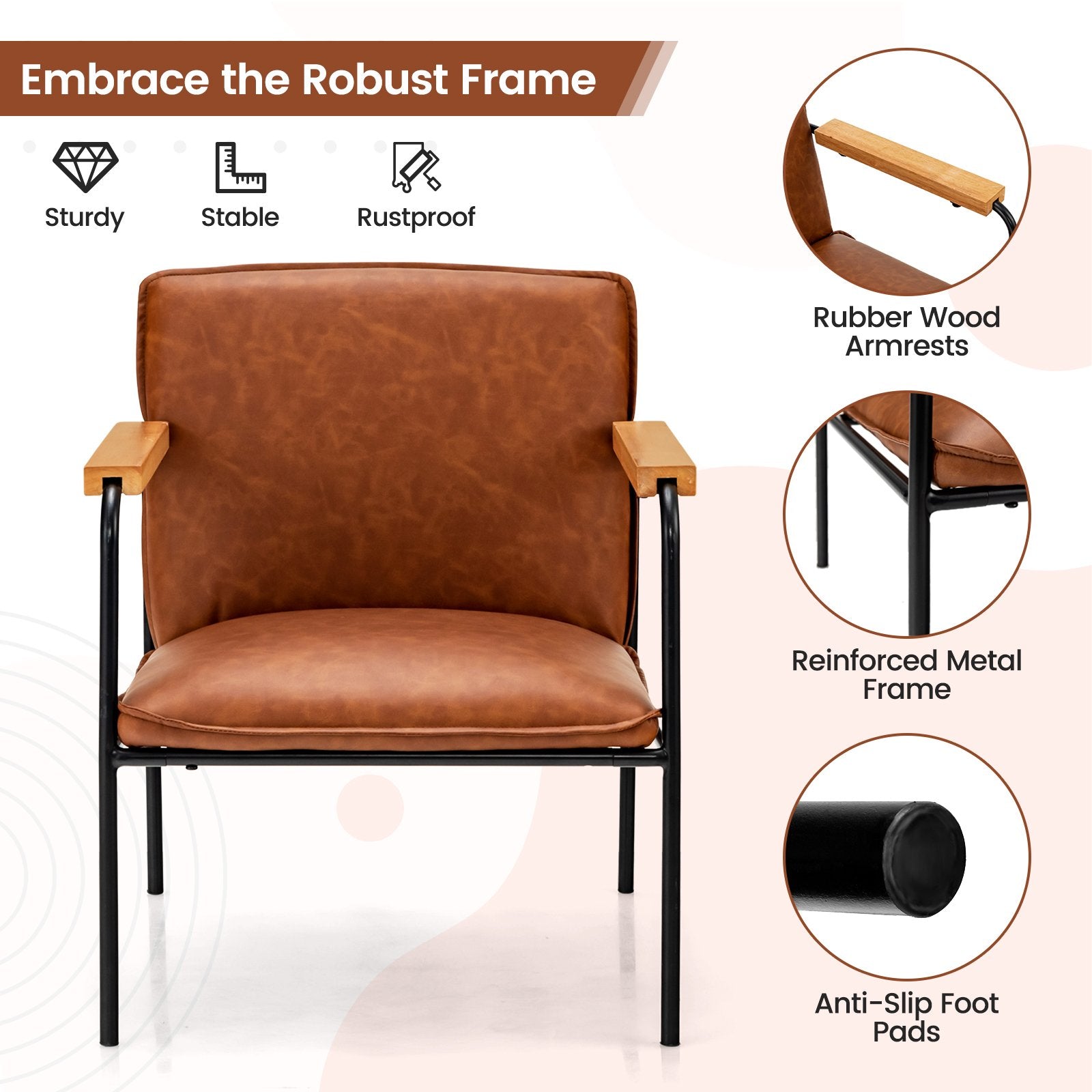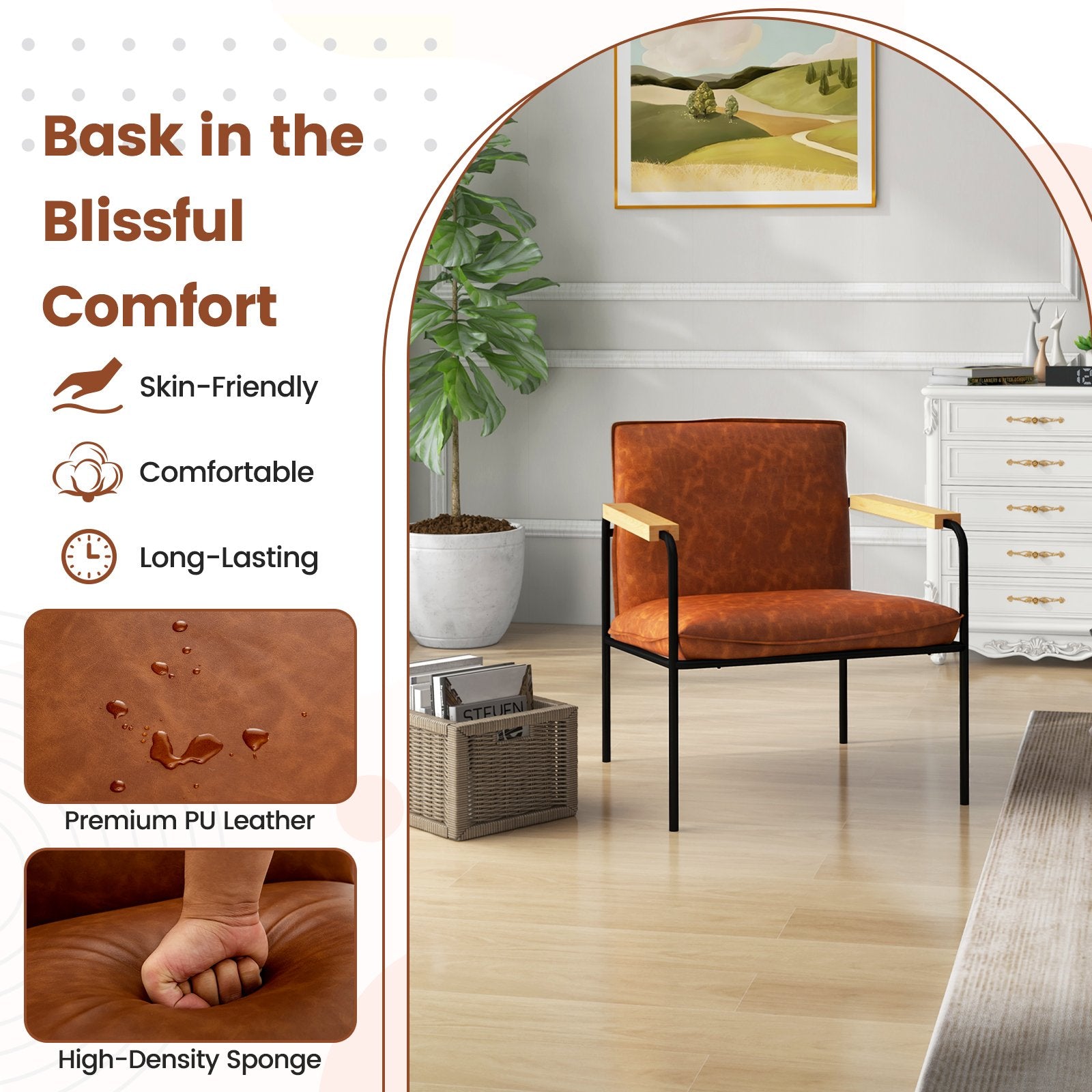 PU Leather Accent Chair with Armrests Backrest and Seat Cushion-Camel
