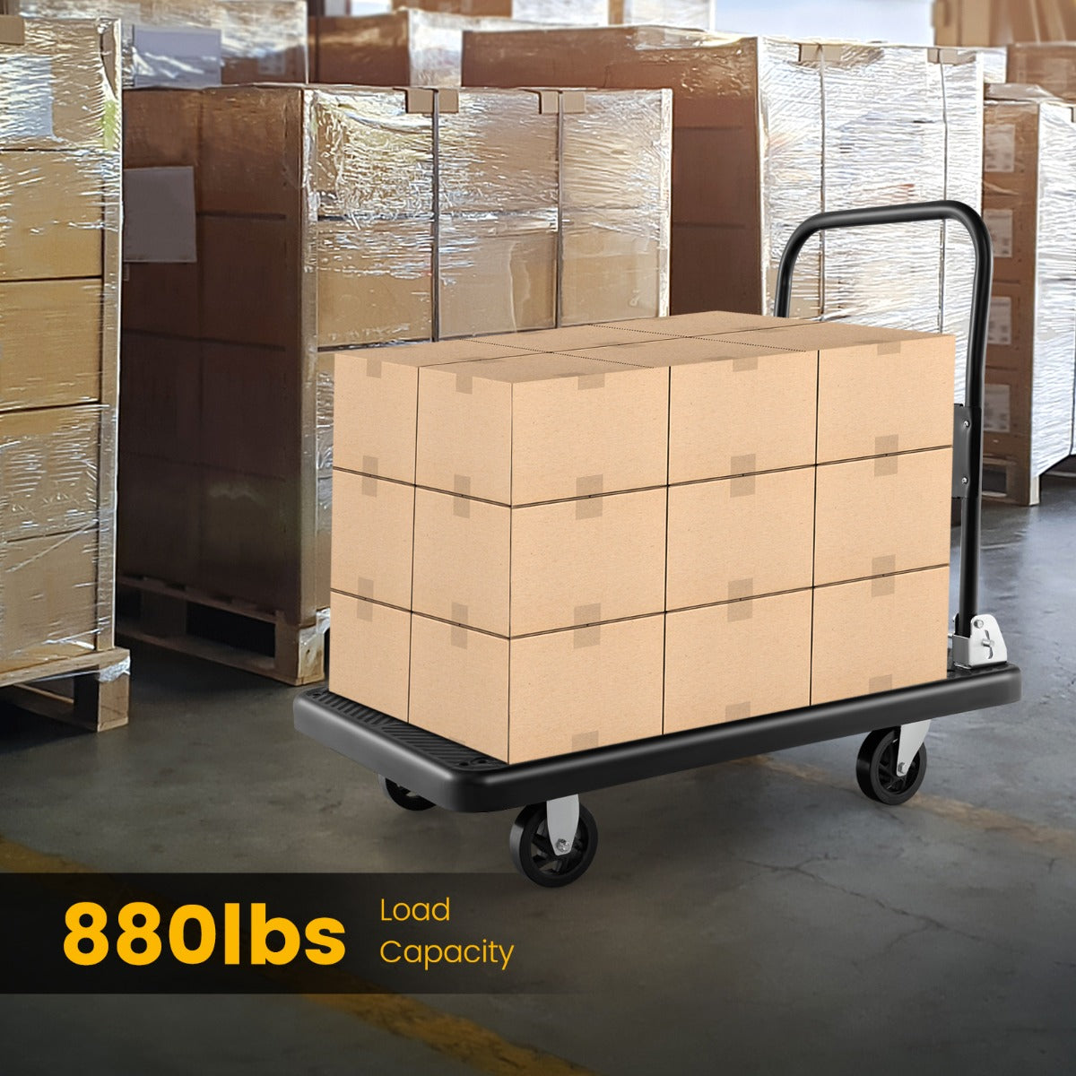Push Cart Dolly with 400kg Weight Capacity and 360° Swivel Wheels-Black