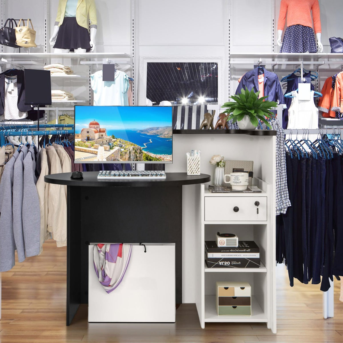 Reception Desk with Lockable Drawer and Adjustable Shelf for Office-Black