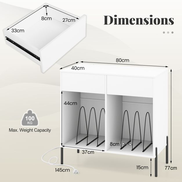 Record Player Stand with Power Outlets and Drawers for Living Room-White