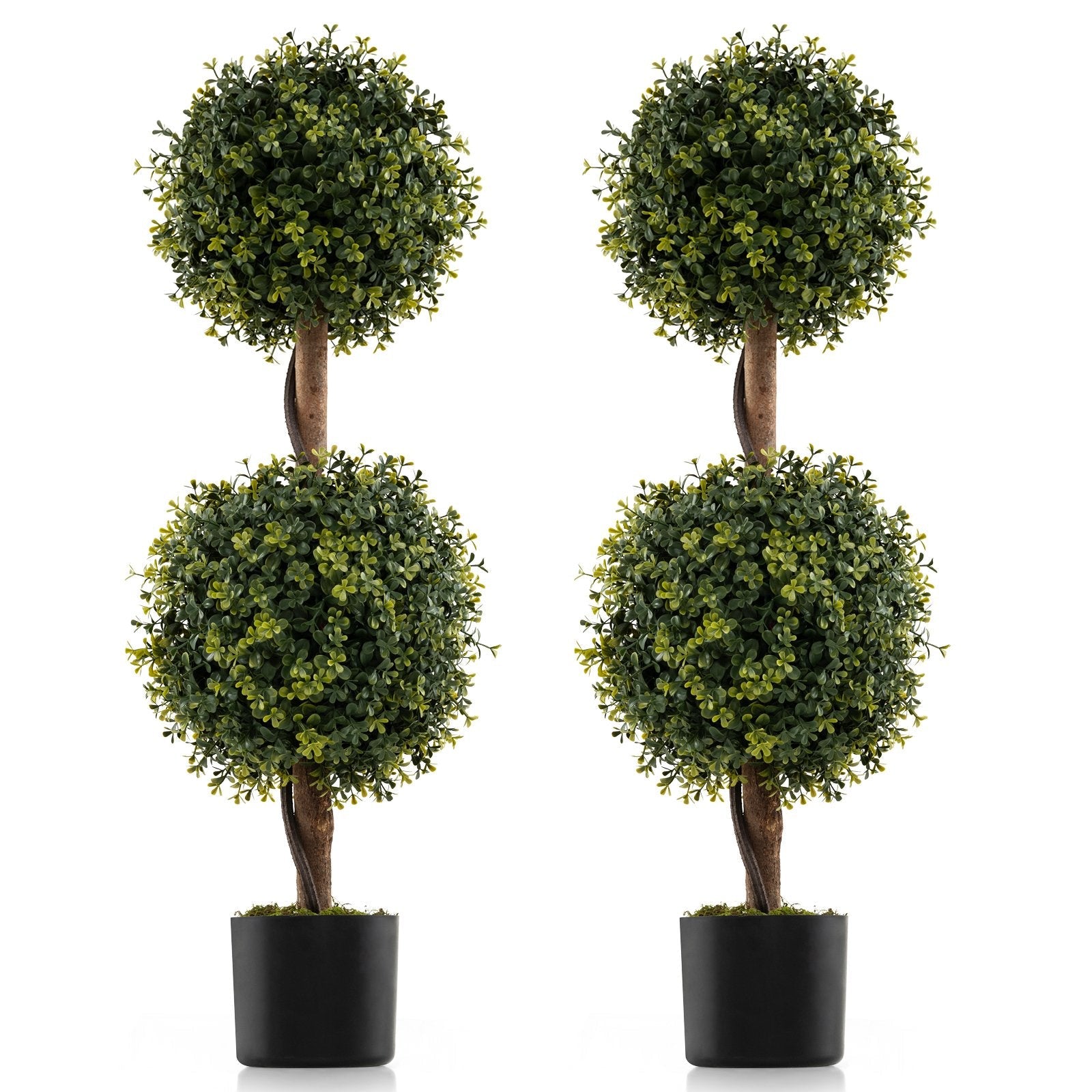 Set of 2 Artificial Double Topiary Ball Trees 90cm Faux Boxwood Topiary Tree