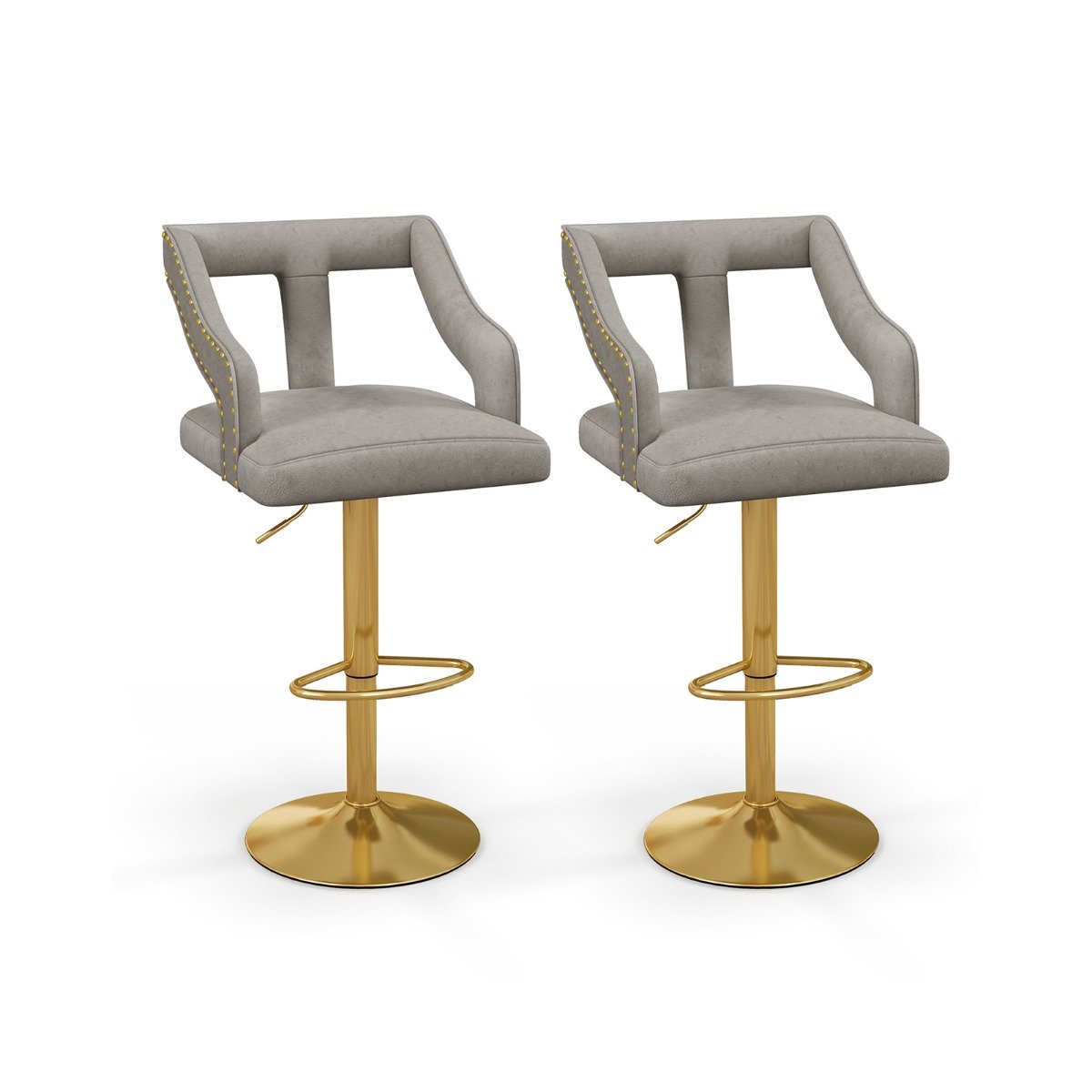 Set of 2 Bar Chairs with 2-Layer Electroplated Metal Base and Anti-Slip Ring-Grey