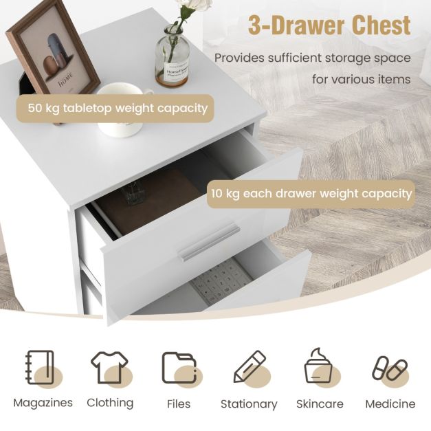 Set of 2 Nightstands with 3 Drawers Nightstand 37.1 x 34.2 x 66.5 cm White