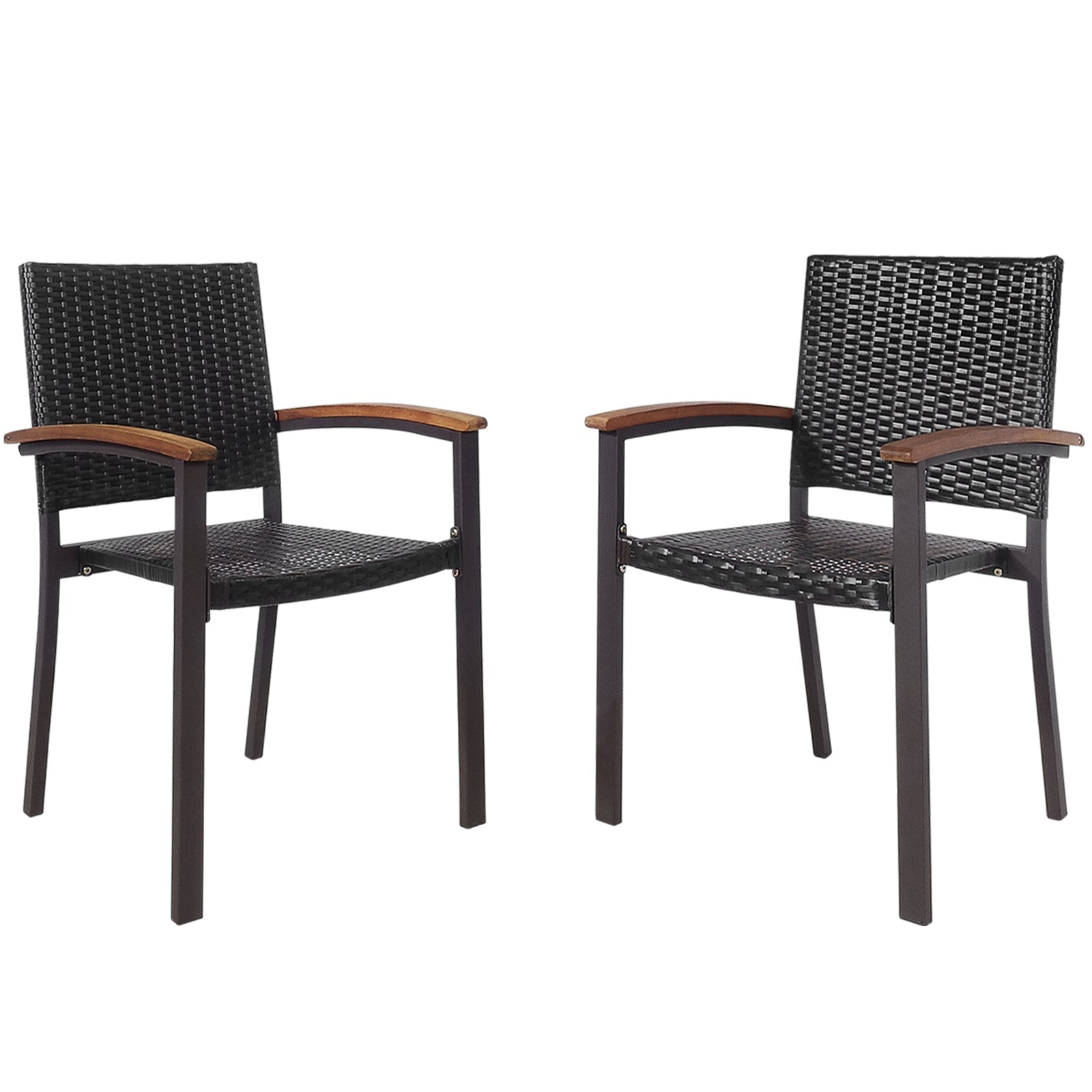Set of 2 Outdoor PE Wicker Stackable Chairs Patio Dining Chairs