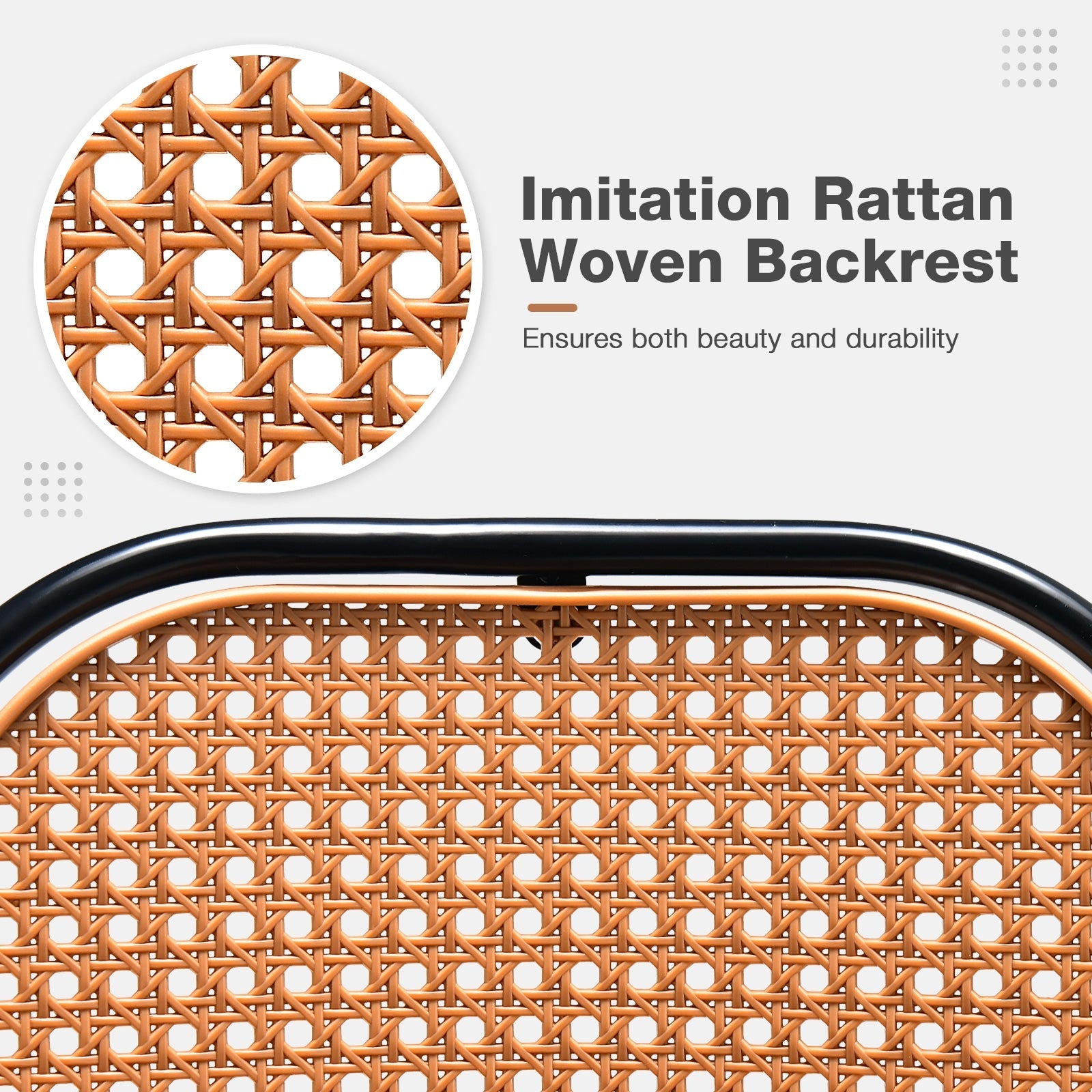Set of 2 PU Leather Bar Stools with Rattan Backrest and Footrest-Brown