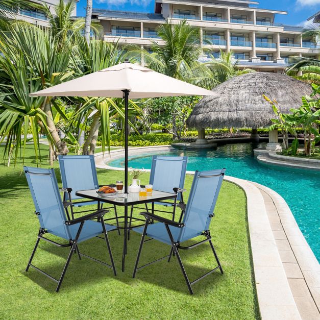 Set of 4 Folding Garden Chairs in Breathable Textilene Camping Chairs with Safety Lock and High Backrest Blue